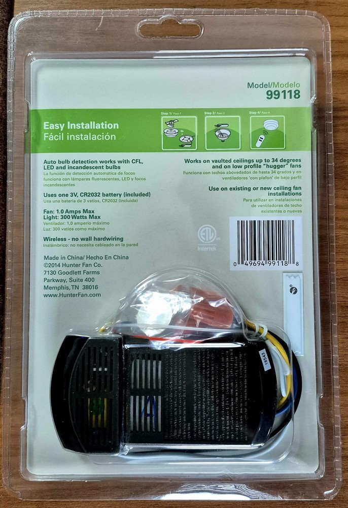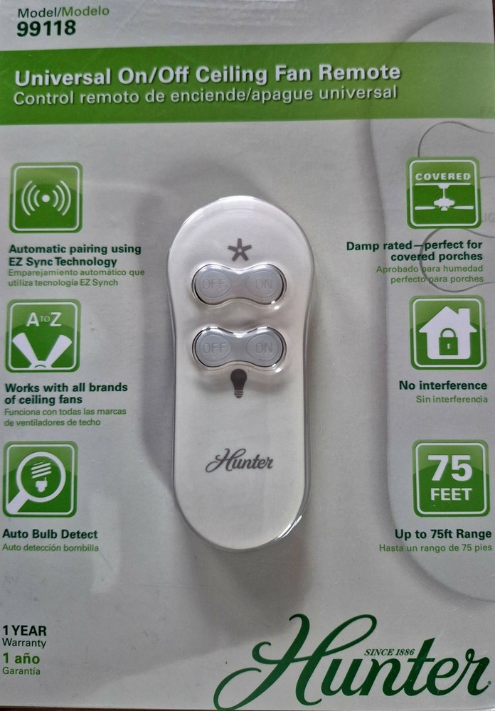 Hunter 99118 Universal Ceiling Fan Remote Control Kit EZ Sync New In Package