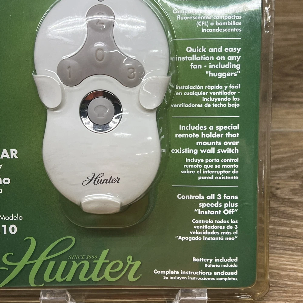 The Hunter Ceiling Fan Remote Control Model 27210 is a versatile and convenient device that works with all brands of ceiling fans. It features 3-speed settings and is wall-mounted for easy access. The remote control is powered by batteries and has a clean, white plastic design that seamlessly blends into any indoor installation area. With a universal compatibility, this remote control by Hunter is a reliable and efficient solution for controlling the speed of ceiling fans with ease.