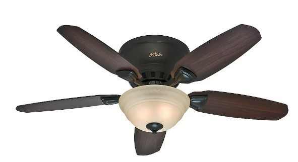 Brand New Hunter Home Ceiling Fan with Light Louden 46-in Flush Mount Premier Bronze Roasted Walnut/Cabin Reversible Blades 5 -Blade Features: · The Louden is a low-profile ceiling fan with a 46-inch blade span, making it ideal for small or standard-sized rooms with low ceilings or for those who prefer a more discreet look that stays close to the ceiling · Powerful WhisperWind motor quietly generates optimal airflow using 3-speeds with reverse feature providing year round comfort · Pull chains included to allow for easy light and fan speed adjustment until your desired settings are reached; remote control adaptable · Hunter offers a limited lifetime motor warranty on all ceiling fans; with a 1-year warranty on all parts (excluding bulbs) · Reversible Roasted Walnut/Cabin Home blades included that operate on a 13° pitch for maximum performance · 120-watt light fixture using two 60-watt candelabra base (E-12) incandescent bulbs included; can be installed without light kit · Flush-mount or Hugger style ceiling fan ideal for low ceiling applications