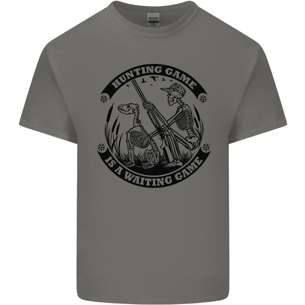 Hunting Game is a Waiting game Hunter Skull Mens Cotton T-Shirt Tee Top