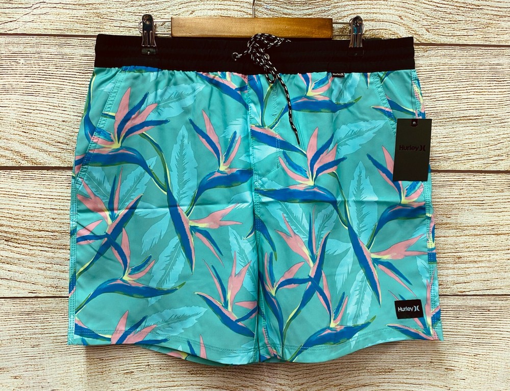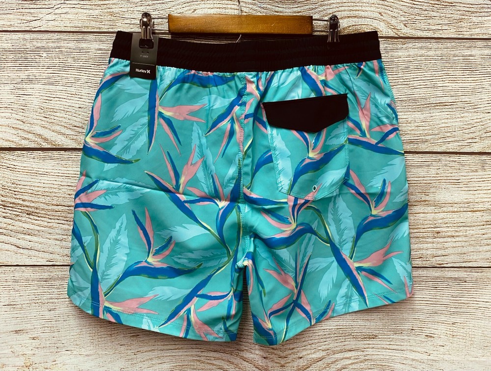 Actual Measurements: Waist: 35-41" Rise: 13" Inseam: 6" Retails for $48 About Hurley Playa Volley Swim Trunks - 17” (For Men) Enjoy a day of sun and surf in Hurley's Playa Volley swim trunks crafted in lightweight, fast-drying fabric. Lightweight, fast-drying fabric Elasticized waist with drawstring for custom fit Hand pockets Back pocket with touch-fasten flap closure and drain grommet Made in China