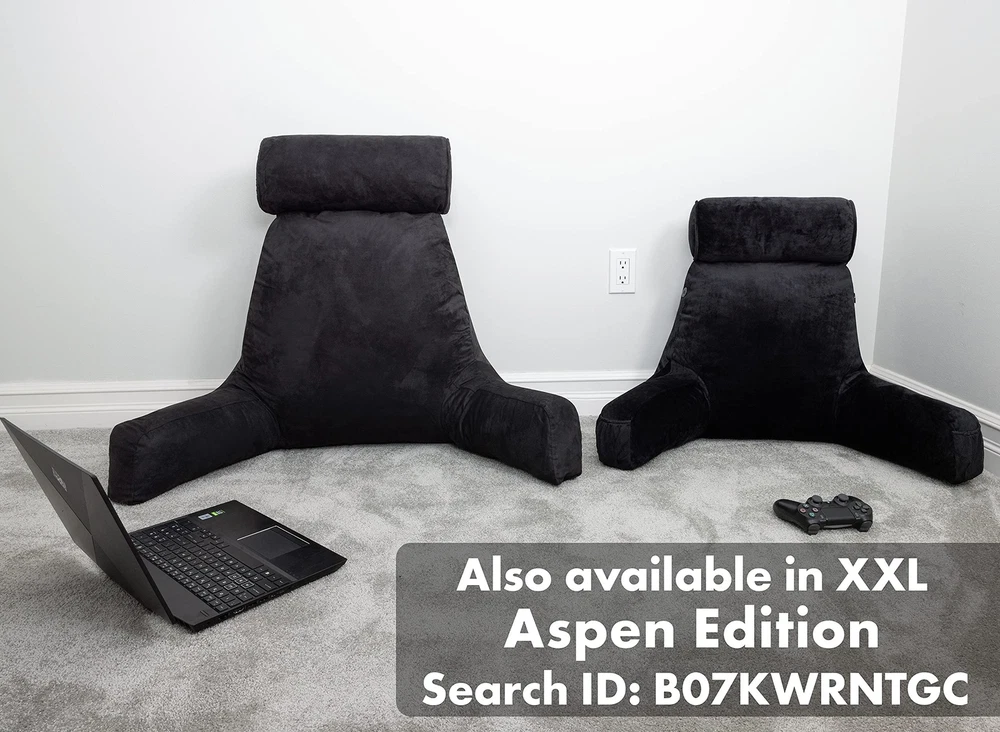 Husband Pillow Medium Aspen Edition Stable Black, Sit Up Reading & Bed Rest with Arms, Ultra-Comfy, Detach Neck Roll - Premium Shredded Memory Foam Backrest, Reverses to Micro: Suede or Plush Product Details Size: Medium Aspen Edition Color: | Stable Black | Brand: Husband Pillow MPN: MINIHUSB-COW-SMSblack UPC: 632726096083 EAN: 0632726096083 Brand: Husband Pillow Special Feature: Removable Cover Color: | Stable Black | Size: Medium Aspen Edition Fill Material: Memory Foam Brand: Husband Pillow Special Feature: Removable Cover Color: | Stable Black | Size: Medium Aspen Edition Fill Material: Memory Foam Shape: Wedge Age Range (Description): Adult Recommended Uses For Product: Reading Use for: Back Material: Memory Foam Item Firmness Description: Medium Product Care Instructions: Machine Wash Number of Pieces: 1 Pattern: Solid Item Weight: 2 Pounds Fabric Type: Microplush/Microsuede UPC: 632726096083 Manufacturer: Hit Notion Product Dimensions: 8.5 x 15 x 31.5 inches Item Weight: 2 pounds Country of Origin: China Item model number: MINIHUSB-COW-SMSblack Date First Available: March 28, 2020 Generous comfort scaled to suit: if youre looking for a big, cozy reading pillow that wont overwhelm you or your bed, this is your guy. The just-right husband pillow offers the same outrageous comfort as its big brother, but its tailored to perfectly fit smaller people and spaces. The aspen editions reversible cover means you get two styles in one amazing reading pillow. Enjoy smooth microsuede or fuzzy microfiber, whichever surface matches your mood and decor. Pockets for everything: remote, tablet, glasses, phone - spacious side and back pockets mean there is space for all your most essential items. Theres even room to stash your favorite energy bar. Although with this relaxing bed rest pillow in your life you may be tempted to skip that evening run. Bikers and other exercise enthusiasts will love the detachable neck roll which makes a great bolster for tired knees or feet. Your kids will love this: homework can actually be fun when youngsters have a cozy reading pillow with arms to keep them company. The shredded memory foam fill provides plenty of back support, and a cuddly pillow is a happy addition to any child or teens room. Family movie night is twice as nice when everyone has a pillow thats just the right size. Grab the popcorn and skittles and enjoy. If someone in your family is college-bound, this bed pillow makes any dorm feel a little more like home. An array of choices: happiness is all about choices, and this pillow gives you plenty of them. A hidden zipper allows you to add or remove memory foam to adjust the loft, so you have just the right amount of back support. Easily switch the reversible cover from microsuede to microfiber for another change of pace. And, if you redecorate, your favorite pillow will still look perfect. Covers are available in an array of colors and styles. Comfort Guarantee: The superior quality and workmanship of the husband pillow is backed by our promised to resolve all issues . This pillow is taller and wider than the leading backrest pillows available, measuring a generous 23 inches in height. In addition, we sell extra covers, should you ever want to change colors or replace the cover.
