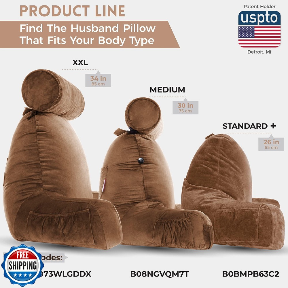 Husband Pillow XXL - Reading Pillow Bed Chair with Arms and Back Support - Chocolate - Back Pillow for Bed Sitting Up - Bed Rest Arm Pillow - Comfy Reading Pillow for Adults Features Full Back & Arm Support: Bed chair pillow and sit-up pillow for bed that doubles as a reading pillow and backrest for adults, providing firm, comfortable support for reading, lounging, or working. Perfect for All Ages: Ideal for adults and kids alike, this cozy reading pillow is great for bedrooms, dorms, and living rooms - perfect for the whole family. Versatile Use: Functions as a book reading pillow, sit-up pillow, or backrest pillow-perfect for beds, couches, dorm rooms, and more. Oversized & Ergonomic: Extra-large design with arms offers full upper body support for reading, gaming, or working comfortably for long periods. Premium Quality & Easy Care: Features shredded memory foam core, washable microplush cover, neck support, and handy pockets for added convenience and durability. Shipping Free & Fast Shipping: We offer free shipping to most of the USA with a normal delivery time of 3-7 days. However, due to the current situation, additional delivery time (up to 3 weeks) may be required for some items. Alternative Carriers: We may use alternative carriers (e.g., USPS, FedEx, UPS) to ensure your package arrives safely and on time. Due to the use of multiple carriers, we are unable to provide a tracking number automatically. Handling Time: Orders are processed and shipped within 1-2 business days of receiving cleared payment. Shipping Restrictions: Shipping to Alaska, Hawaii, Puerto Rico, Guam, and other US territories may incur shipping charges or delivery restrictions. Please contact us before ordering, or your order can be refunded/cancelled. State Restrictions: Certain items may not be shipped to California due to state regulations. Contact for Tracking Updates: If you require tracking updates or have any concerns about the delivery of your order, please feel free to contact us, and we will be happy to assist you. Return Policy 30-Day Hassle-Free Returns: If you are not completely satisfied with your purchase, you can return the item for free within 30 days of receiving it for a full refund or exchange. Easy Return Process: Contact us, and we will provide you with a prepaid return shipping label and detailed instructions. No Restocking Fee: There are no restocking fees for returns. However, the buyer is responsible for return shipping costs if the return is not due to a seller"s error. Refund Processing: Refunds will be processed within 1 business day of receiving the returned item in its original condition. Feedback Your feedback is extremely important to us. We strive to provide the best products and customer service possible. If you are satisfied with your purchase, please take a moment to leave us a positive review. If you have any concerns or issues with your order, please contact us before leaving negative feedback. We are committed to resolving any problems and ensuring your satisfaction. Contact Us If you have any questions or concerns, please feel free to reach out to our customer support team. You can contact us through the eBay messaging system. We are available Monday to Friday, 9:00 am to 5:00 pm EST, and we will do our best to respond to your inquiry within 24 hours. Thank you for supporting our small family business!