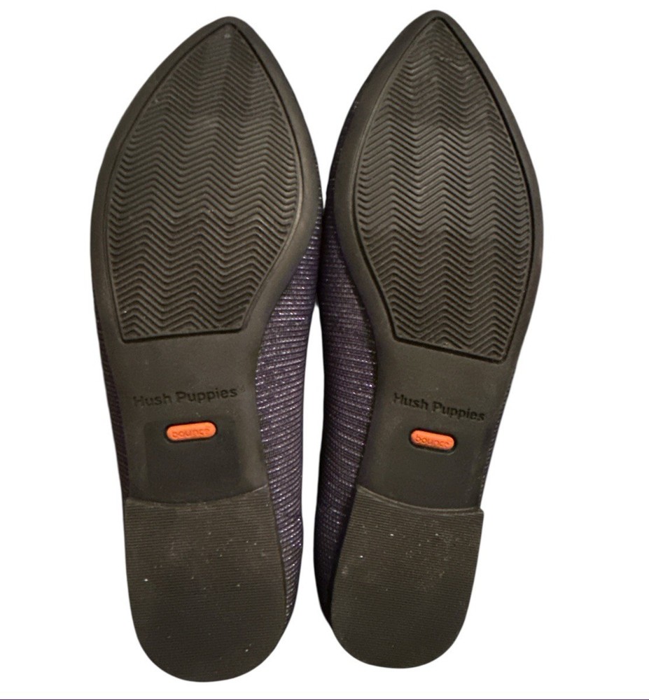 Hush Puppies Bounce Pointed Toes Flats sz 7, navy blue with silver sparkle. Check out the design. These are basically new.