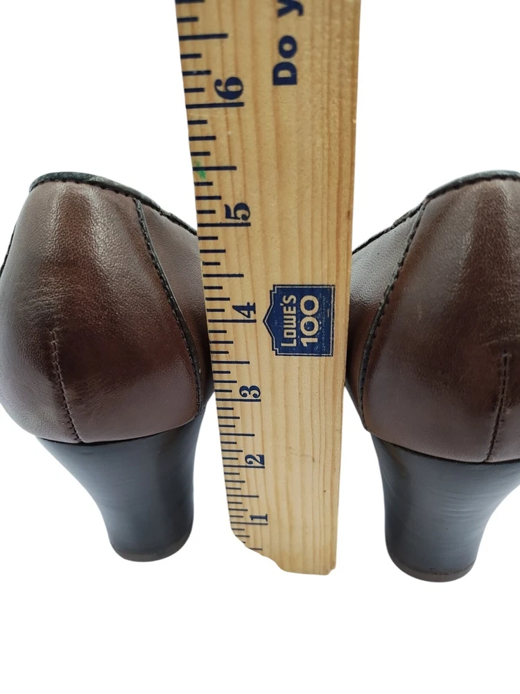 Hush Puppies Women Brown Leather Pumps Sz 9.5 Medium Heels HPO Flex Office Shoes