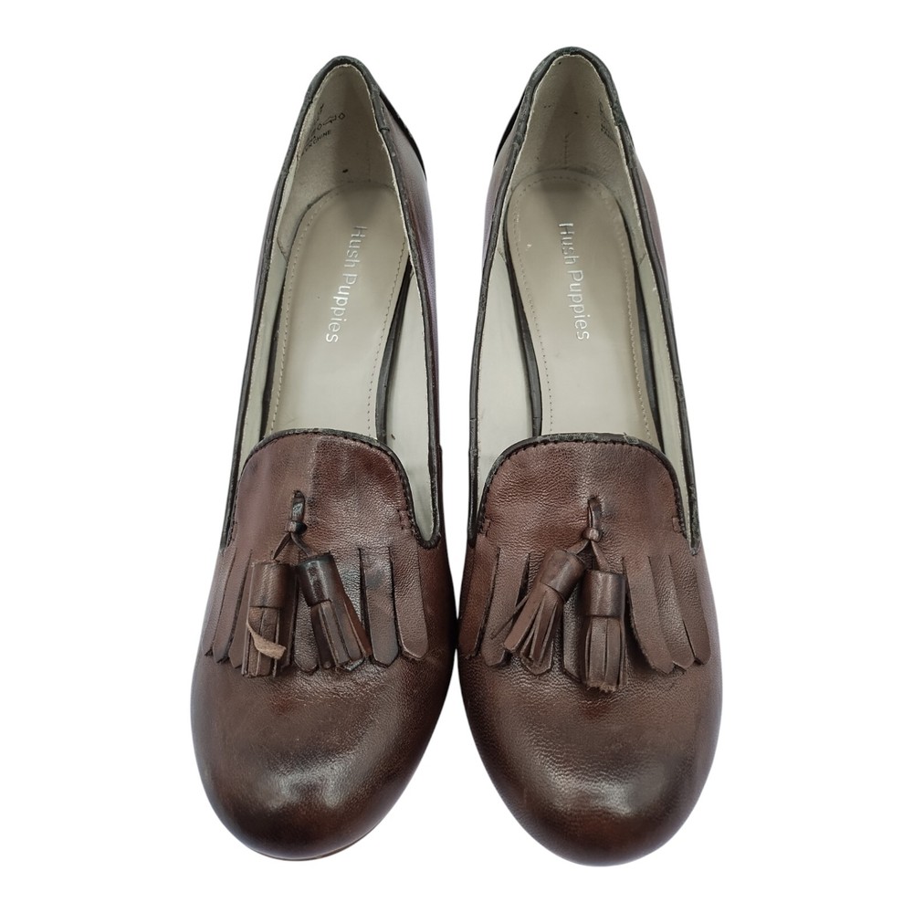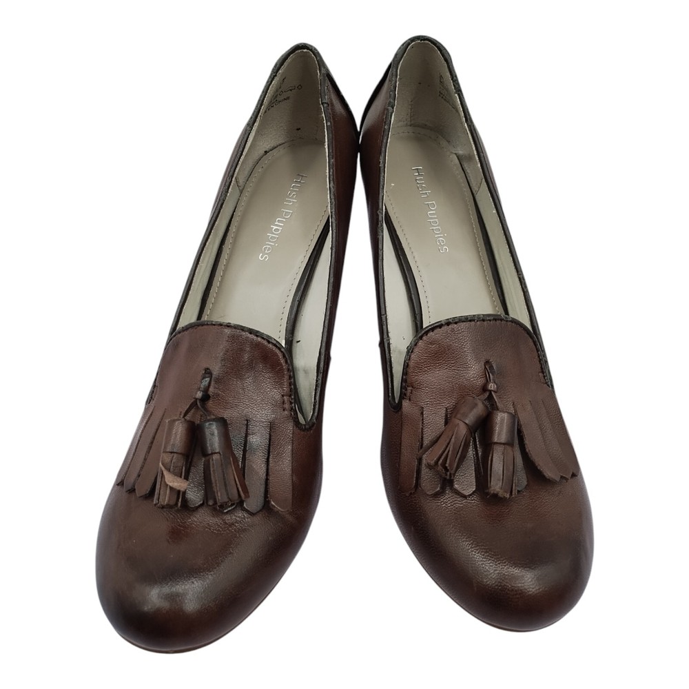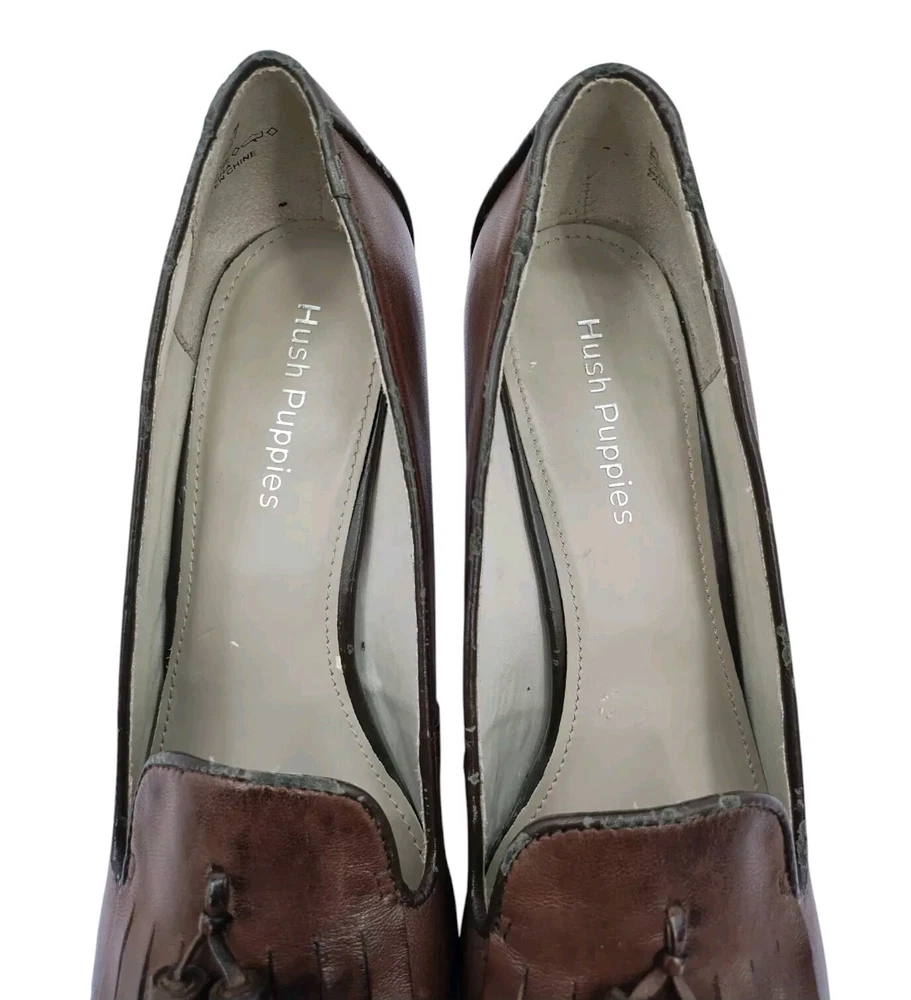 Hush Puppies Women Leather Pumps Brown Size 9.5 Medium Moyen HPO Flex It has peeling on the edge as shown in the photos. Good condition see picture