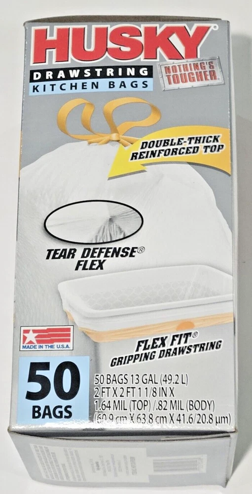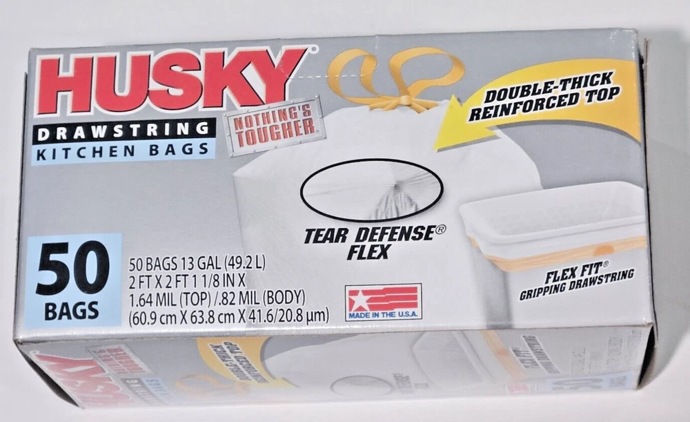 Keep your kitchen clean and organized with these Husky 13 Gallon Drawstring Kitchen Trash Bags. This pack includes 50 bags made of durable plastic material, perfect for holding your kitchen waste. The bags are designed with a drawstring closure to ensure that your trash stays secure and out of sight. The white color of the bags complements any kitchen décor and the 24-inch height and width provide ample space for your garbage. These bags are ideal for any household or commercial kitchen and are a must-have for easy and hassle-free garbage disposal. (We Combine Ship Let Us Know What You Want And We Will Put Into One Package For Cheaper Shipping)