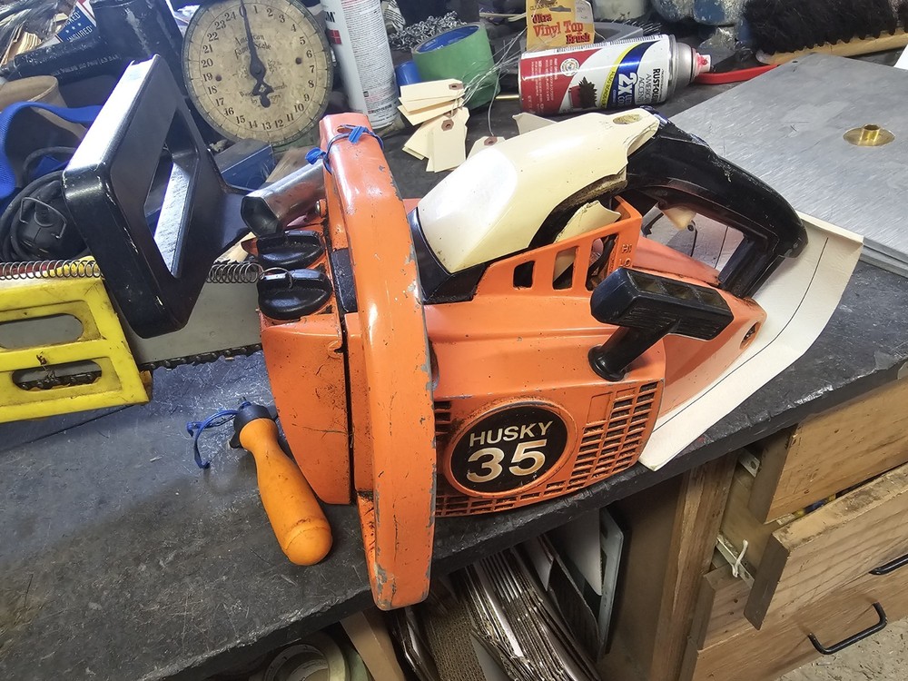 Husky 35 Chainsaw Husqvarna Vintage Antique Great Find For Collector has good compression cranks haven't used in a while but worked well the last time I used it