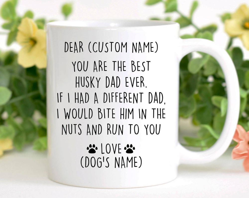 Husky Dad Birthday Gift Husky Dad Christmas Gift Husky Dad Valentine Gift Favorite Husky Dad Gift Husky Dad Appreciation Husky Dad Mug Product Details.. This high quality 11oz. ceramic white mug has a premium hard coat that provides crisp and vibrant color reproduction sure to last for years. Perfect for all hot & cold beverages. The highest quality printing possible is used. It will never fade no matter how many times you wash it. Material: 100% Ceramic. Print both sides. Dishwasher and Microwave Safe. High Gloss + Premium White Finish. Printed in the U.S.A. Personalized & Custom. We support personalized and custom mug to add custom, when placing an order, you can add notes to the "order note" in shipping address section. Also you can contact us directly via message. Shipping Info. Ready to ship in 1 to 2 business days, All products are made-to-order and proudly printed in the United States. Shipped by USPS and DHL, You will receive your order in 5-7 days. Replace & Refund. All products are defective during shipping broken, chipped will be replaced free of charge. You are not satisfied with the product, we will refund 100% money to you. If any other issues arise, please do not hesitate to message, we would be more than happy to assist you.