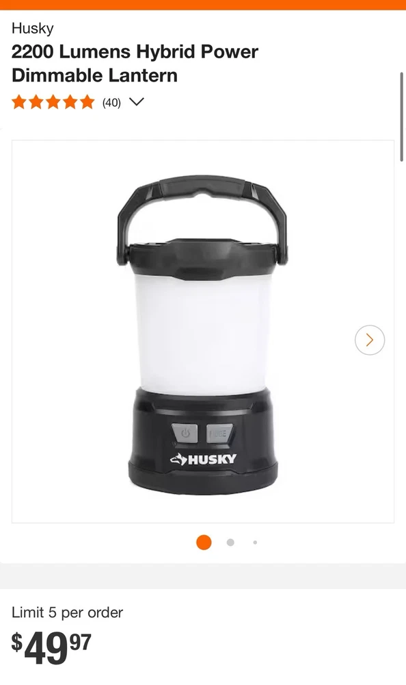 Husky-NEW OPEN BOX-Light Power Dimmable Lantern 2200 Lumens Hybrid