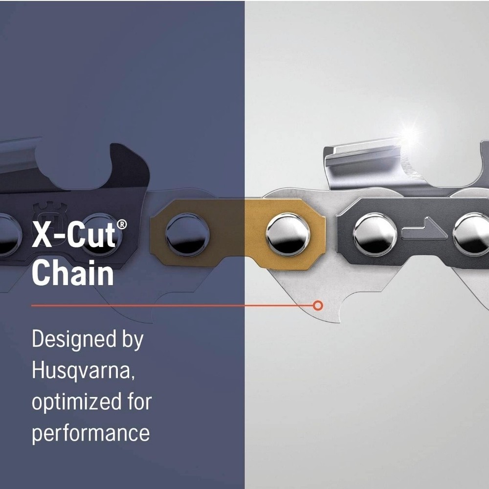 Fits 24 inch chainsaw bars on 455 and 460 Rancher Chainsaws Husqvarna’s X-Cut chain is ready to supercharge your homeowner or professional chainsaw cutting work High durability thanks to a precisely balanced combination of materials and manufacturing processes Sharpness straight out of the box that lasts longer before needing to be sharpened and Pre-stretched at the factory so it works longer without needing to be adjusted Oil-shaped channels in the links transport oil to the X-Cut, resulting in superior lubrication and less wear and tear on your saw