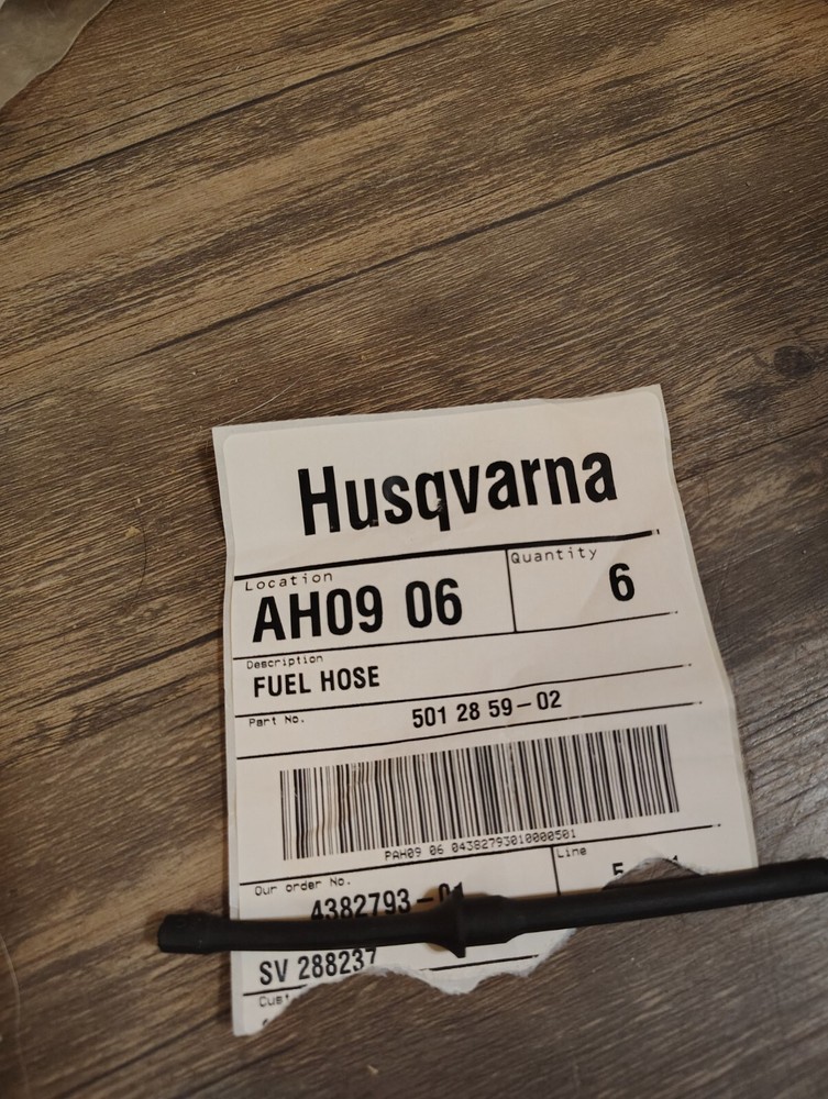 I have a brand new Husqvarna fuel hose for sale. The part number is 501285902. The stock name is new and the location is shop in box 3. - I have 3 business day handling on all of my listings. Please look to see the estimated delivery date. If you need your item shipped sooner please message me. - Shipping will be done the most economical way. I ship with USPS, Ups and speedee delivery. -My used parts may be dirty so they will need to be cleaned before installing. They come as seen in the pictures. If you are using the parts for a restoration please message me before purchasing so I can look for small imperfections. Normally the used parts I sell aren't restoration quality. - Before leaving negative or neutral feedback please message me and give me a chance to make it right. I do make mistakes on occasion and I like the opportunity to make it right. -Thanks for your business!
