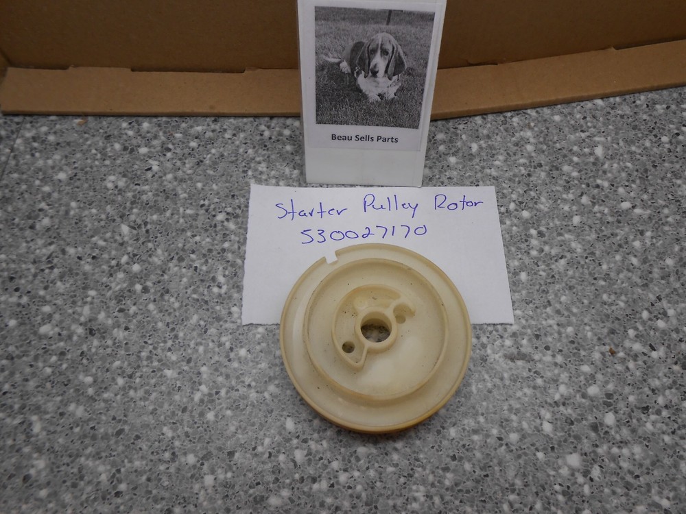 Up for Sale is a New Husqvarna/Poulan/Craftsman Starter Pulley Rotor. Please make sure your part number works for you as I do not accept returns. ALL SALES FINAL NO RETURNS Thank you for Looking Location Little Beaver/Tennant/Subaru Box (25)