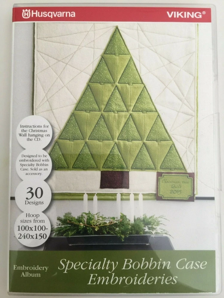Husqvarna Viking Specialty Bobbin Case Embroideries Collection 296 #920446-096 New Description Lovely embroideries combined with the specialty bobbin case, allows you to create boundless versions of each design. It is perfect for embellishing garments and home decor items. Create wonderful Christmas motifs to add to your current collection. Instructions for the Christmas wall hanging is on the CD. The specialty Bobbin Case is sold as an accessory. Compatible hoop sizes: 100mm x 100mm, 240mm x 150mm File Formats: VP3, VIP, HUS, DST, PECM PESM XXX, EXP, ART, JEF All designs are not compatible with all sewing systems. Check your hoop size before purchasing. RETURN POLICY: Returns will only be accepted if the item is in brand new condition with the original packaging that it was sent to you. If the item has been used it will not be accepted as a return. WE DO OFFER COMBINED SHIPPING IF YOU USE THE CART. WHEN YOU USE THE CART THE SHIPPING WILL BE AUTOMATICALLY COMBINED AND DISCOUNTED FOR YOU.