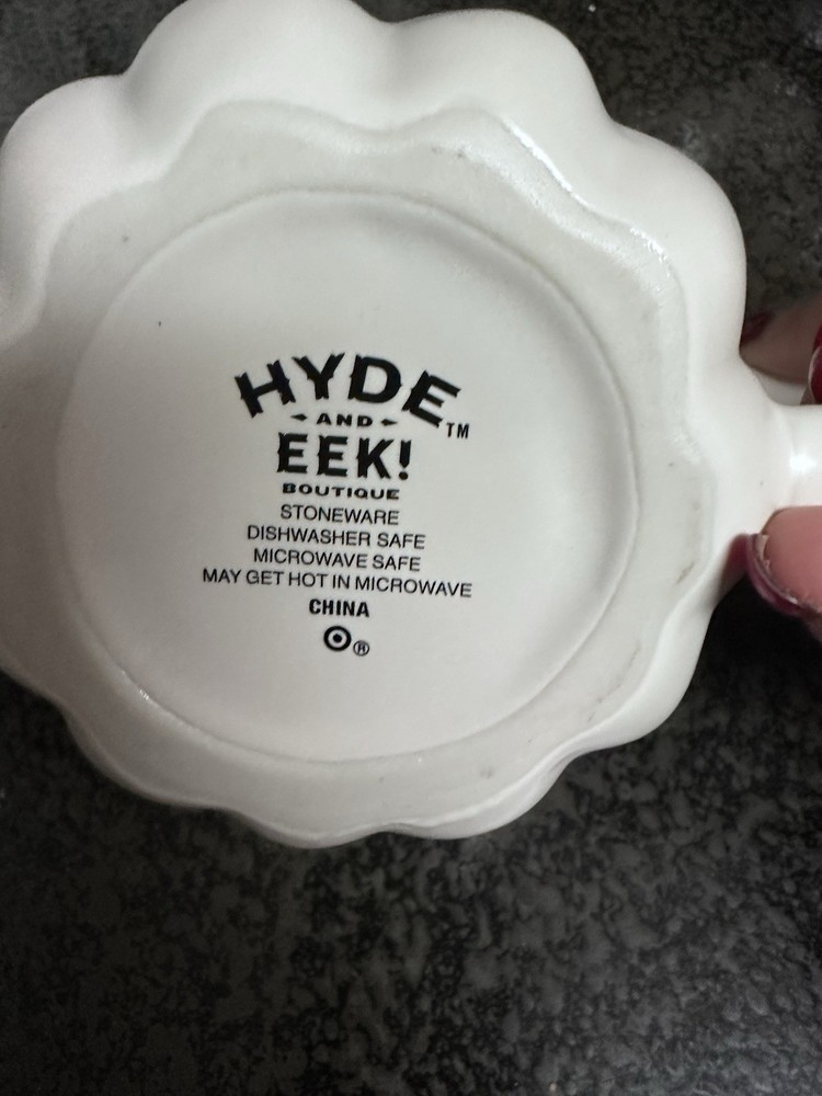 The Hyde & EEK! Boutique Pumpkin Mug in white stoneware from Target is a small figural coffee mug perfect for all occasions, with a seasonal pumpkin pattern ideal for Halloween. Made of dishwasher and microwave-safe stoneware, this contemporary style mug is both hot and cold beverage compatible. With a 4-inch diameter and a handle for easy grip, this coffee mug is a stylish addition to any kitchen or home decor collection.
