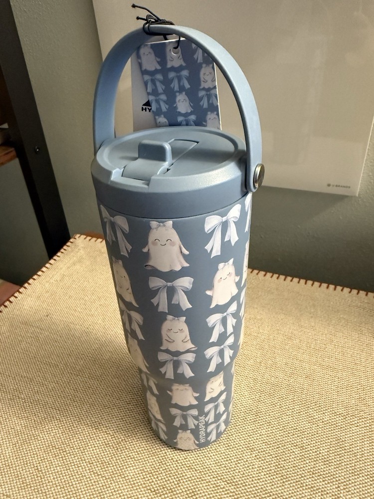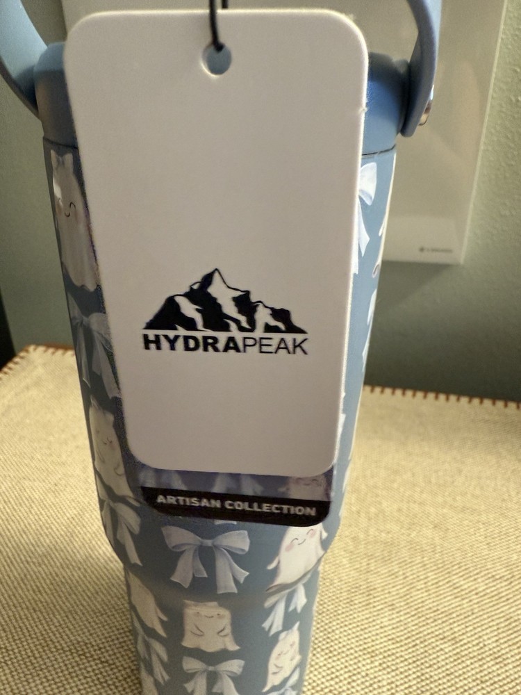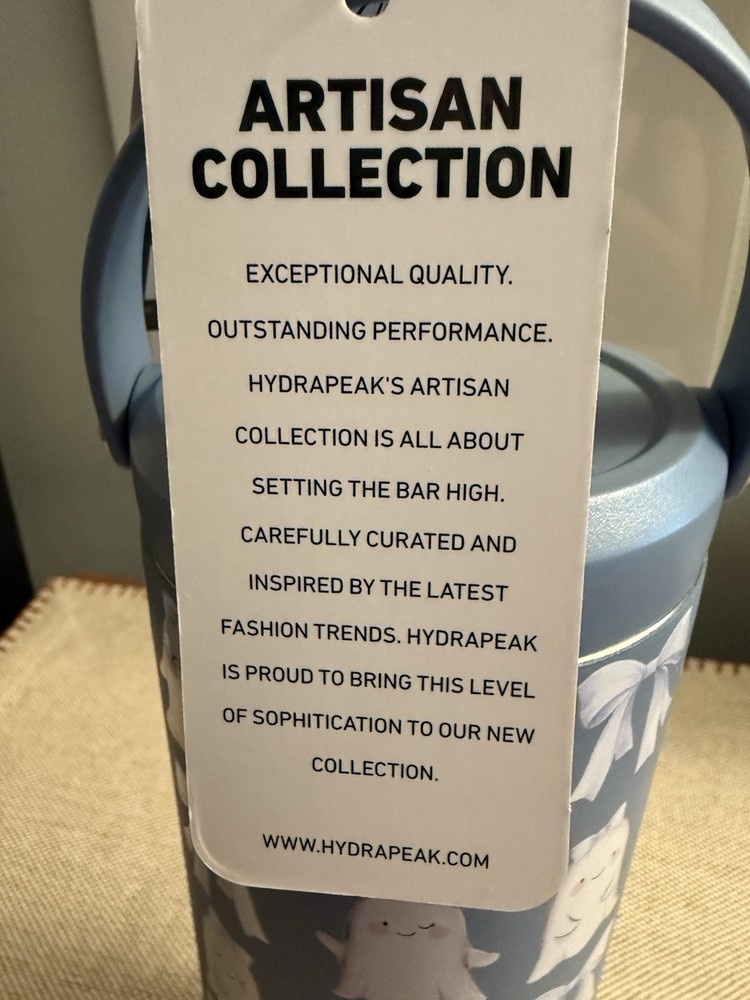 The Hydrapeak Artisan Collection Ghosts & Bows 32oz Stainless Steel Water Bottle is a stylish and functional drinkware item featuring a screw-on lid in a beautiful blue color. Made from durable stainless steel, this water bottle is insulated to keep your drinks cold for longer periods. The themed design of ghosts adds a fun touch to the overall appearance, making it a unique and eye-catching choice for those looking for a high-quality and leak-proof water bottle. Perfect for on-the-go hydration, this water bottle is a must-have for anyone seeking both style and functionality in their daily routine.
