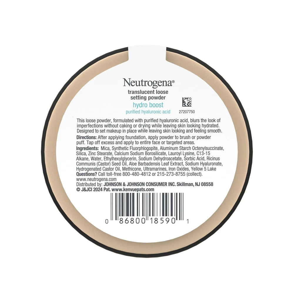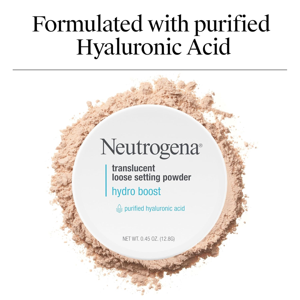 Hydro Boost Translucent Loose Setting Powder with Purified Hyaluronic Acid for Smooth Skin, Blurs Imperfections and Sets Makeup, Lightweight Face Powder, .44 Oz Neutrogena Hydro Boost Translucent Loose Setting Powder helps blur imperfections and sets makeup in place while keeping skin feeling smooth, radiant, and hydrated without drying or caking This translucent face powder is enriched with purified hyaluronic acid, a hydrating ingredient that binds water to skin A lightweight formula, the powder applies evenly and seamlessly to minimize the look of pores and lock in foundation, concealer, or blush so makeup wears well all day Designed to enhance your makeup routine, this setting powder provides a silky, shine-free finish and can be applied to face or targeted areas Use Neutrogena Hydro Boost setting powder as the final step in your beauty routine for a flawless, pore-blurred look that won’t dry out your skin Achieve a flawless finish with Neutrogena Hydro Boost Translucent Loose Setting Powder. This weightless setting powder helps blur imperfections, and lock makeup in place without drying your skin. Infused with purified hyaluronic acid, it leaves skin feeling hydrated, silky smooth and looking radiant. The translucent powder blends seamlessly onto skin without appearing chalky or cakey. Designed to minimize the look of pores, this loose face powder is ideal for all skin tones. After ap-plying foundation, dust the powder over your face using a brush or puff for long-lasting wear. It’s the perfect final step for a smooth, hydrated makeup look that lasts all day. Dimensions 2.75 inches x 1.38 inches x 2.75 inches. Weight: 2.4 oz Specifications Color Off White Item Form Loose Product Dimensions 1.38 x 2.75 x 2.75 inches; 2.4 ounces Country of Origin USA Skin Type All Finish Type Dewy Shipping: Shipped from the USA. Fast delivery within 2–3 days. Payment: PayPal, credit card, bank transfer. Returns: 30-day free return – we cover the shipping cost. Quality: Made in Europe/USA/China. No customs fees. VAT invoice on request. Feedback: You’ll automatically receive positive feedback after payment.