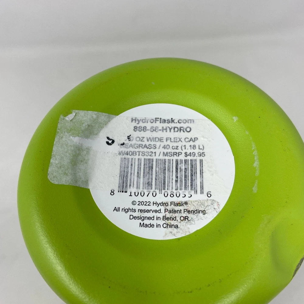 Condition: Used - Good The item has dents The item has dirt, stains and/or discoloration The item has scratches or scuffs See photos for full visual reference Model: Hydro Flask 40 oz Wide Mouth Bottle with Flex Cap - Seagrass Green At Unturned, we were shocked to discover how many perfectly functional returns were being wasted. That's why we made it our mission to offer these e-commerce returns—often overlooked and discarded—at unbeatable prices. We carefully inspect and test all our products to ensure quality and accurately describe their condition. However, if you receive an item that does not match the description or meet expectations, please reach out, and we will make it right!