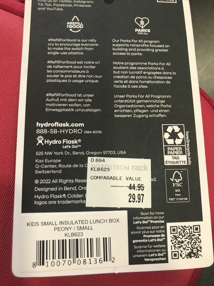 Hydro Flask Kids Small Insulated Lunch Box Peony, Style # KLB623. Condition is New. Shipped with USPS Ground Advantage.
