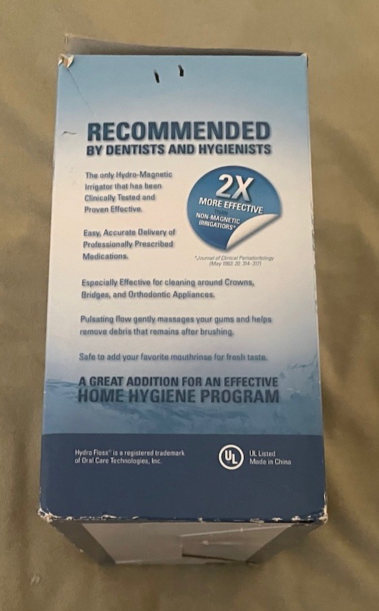 Hydro Floss New Generation of Oral Irrigator w 4 Color Coded Jet Tips. The box is open, but everything inside is completely unused. Everything included is very clean and smoke free. Please check the pictures carefully in order to better assist the condition of the box. I am willing to bundle deal with multiple purchases. I will provide fast and careful shipping. I will respond to all inquiries. Thank you for your time.
