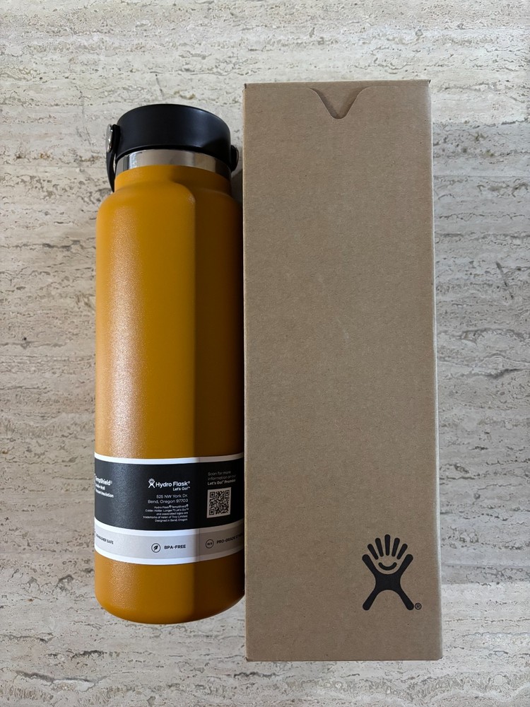 A brand new, never used, stainless steel, insulated, reusable, and sized for epic days— the HydroFlask 40 oz Wide Mouth water bottle is the flask to grab to keep cold drinks cold and hot ones hot. The large opening makes it easy to add ice—and get yourself a bigger gulp. 24 hours cold, 12 hours hot TempShield®️ double-wall vacuum insulation Leakproof when closed Pure taste, no flavor transfer Durable stainless steel Wide Mouth opening is ice-cube friendly BPA-Free Not for use on a stove, in a microwave or freezer Keep hot liquids out of the reach of children