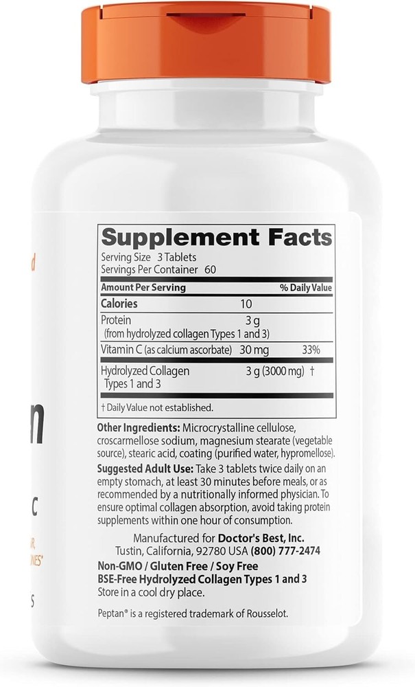 Hydrolyzed Collagen Types 1 & 3 with Peptan | 180 Tablets for Overall Wellness ‹ › ‹ › ‹ › ‹ › ‹ › ‹ › ‹ › ‹ › ‹ › Hydrolyzed Collagen Types 1 & 3 with Peptan | 180 Tablets Unlock Your Best Self with Essential Collagen Experience the power of Hydrolyzed Collagen Types 1 & 3 , meticulously designed to support your overall wellness. This supplement is not just a beauty regime; it’s a commitment to enhancing your health and vitality. Key Benefits: Comprehensive Support: Supports hair, skin, nails, tendons, ligaments, and bones while promoting joint comfort, mobility, and an improved quality of life. Youthful Appearance: Works at a structural level, helping maintain youthful skin by boosting its structure and volume. Optimized Absorption: Features pure collagen protein that is enzymatically hydrolyzed into low molecular weight peptides for optimal bioavailability, ensuring your body can utilize every nutrient. Formulated for Your Needs: Available in easy-to-swallow tablets, but also offered in capsules and powder for versatile consumption preferences. Non-GMO and Gluten-Free: Formulated with care to fit a variety of dietary lifestyles without compromising quality. Why Choose Hydrolyzed Collagen Types 1 & 3? As the most abundant protein in our body, collagen is vital for maintaining the strength and flexibility of various tissues. By incorporating our collagen supplement into your daily routine, you provide your body with the essential building blocks for the growth and maintenance of healthy skin, joints, and connective tissue. Each tablet is enriched with Vitamin C, a crucial nutrient for collagen synthesis, ensuring you receive the complete benefits of this remarkable compound. Elevate your wellness journey and embrace the transformative benefits of Hydrolyzed Collagen Types 1 & 3. Order your 180-tablet supply today to experience a new era of vitality and enduring beauty! Shipping Free & Fast Shipping - We offer free shipping to most of the USA with a normal delivery time of 3-7 days. However, due to the current situation, additional delivery time (up to 3 weeks) may be required for some items. Alternative Carriers - We may use alternative carriers (e.g. USPS, FedEx, UPS, etc.) to ensure your package arrives safely and on time. Due to the use of multiple carriers, we are unable to provide a tracking number automatically. Handling Time - Orders are processed and shipped within 1-2 business days of receiving cleared payment. Shipping Restrictions - Shipping to Alaska, Hawaii, Puerto Rico, Guam, and other US territories may incur shipping charges or delivery restrictions. Please contact us before ordering, or your order can be refunded/cancelled. State Restrictions - There may be restrictions based on your state of purchase. For example, certain items may not be shipped to California due to state regulations. Contact for Tracking Updates - If you require tracking updates or have any concerns about the delivery of your order, please feel free to contact us, and we will be happy to assist you. Return 30-Day Hassle-Free Returns - We want you to be completely satisfied with your purchase. If you are not, you can return the item within 30 days of receiving it for a full refund or exchange. Easy Return Process - To start a return, simply contact us and we will provide you with a prepaid return shipping label and detailed instructions. Restocking Fee - There are no restocking fees for returns. However, the buyer is responsible for return shipping costs if the return is not due to a seller's error. Refund Processing Time - Refunds will be processed within 5 business days of receiving the returned item in its condition. Payment We accept all major credit cards, PayPal, and Apple Pay for your convenience. Your payment information is secure and encrypted to ensure a safe and seamless transaction. Please complete your payment within 3 days of purchase to avoid any delays in shipping. Feedback Your feedback is extremely important to us. We strive to provide the best products and customer service possible. If you are satisfied with your purchase, please take a moment to leave us a positive review. If you have any concerns or issues with your order, please contact us before leaving negative feedback. We are committed to resolving any problems and ensuring your satisfaction. Contact Us If you have any questions or concerns, please feel free to out to our customer support team. You can contact us through the eBay messaging system. We are available Monday to Friday, 9:00 am to 5:00 pm EST, and we will do our best to respond to your inquiry within 24 hours. Buy it now and enjoy a pleasant shopping experience! Unit Quantity: 180 Active Ingredients: Collagen,Vitamin C Formulation: Capsule,Powder,Tablet Features: Non-GMO,Gluten Free,Soy Free Main Purpose: Hair, Skin & Nail Health,Joint Support,Hair,Skin & Nail Health,Bone & Joint Support Ingredients: Collagen,Vitamin C Department: Adult Type: Vitamin Number of Pills: 180 Dosage: 1000 mg Item Weight: 7.05 oz Unit Type: oz