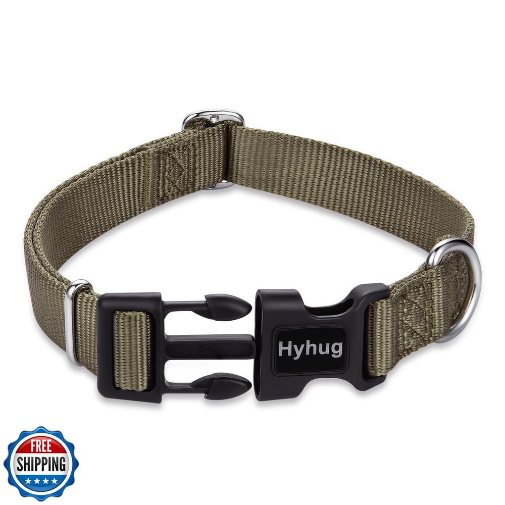 Hyhug Pets Classic Regular Heavy Duty Nylon Dog Basic Collar for Medium Dogs Daily Use Walking Jogging. (Medium, Military Green) Features Size: M, adjustable length 12"-16" ( 0.79" width), for the proper fit when your dog wears it, please measure your dog's neck circumference and refer to the size chart picture we provided to choose the right size. Easy to Put On: This nylon dog collar is classic and stylish, with various colors and sizes. The buckle enables quick wear and removal. An independent loop for dog tags and leashes brings great convenience for daily dog - walking and management. Durable Construction: This dog collar is made of sturdy and high quality nylon material. It also offers a wide variety of color options, and is suitable for dogs of all breeds and sizes, ensuring long-lasting durability. Colorfast: Our dog collars are professionally dyed. The colors penetrate deep into the fibers and attach firmly. Despite exposure to sunlight, rain, or multiple washes, the colors remain vibrant for a long time, enhancing your dog's wearing experience. Made in China: our dog collar inherits the traditional craftsmanship of Chinese manufacturing. Skilled workers carefully produce each collar, combining time-tested techniques with modern design to create a functional and stylish accessory for dogs. Shipping Free & Fast Shipping: We offer free shipping to most of the USA with a normal delivery time of 3-7 days. However, due to the current situation, additional delivery time (up to 3 weeks) may be required for some items. Alternative Carriers: We may use alternative carriers (e.g., USPS, FedEx, UPS) to ensure your package arrives safely and on time. Due to the use of multiple carriers, we are unable to provide a tracking number automatically. Handling Time: Orders are processed and shipped within 1-2 business days of receiving cleared payment. Shipping Restrictions: Shipping to Alaska, Hawaii, Puerto Rico, Guam, and other US territories may incur shipping charges or delivery restrictions. Please contact us before ordering, or your order can be refunded/cancelled. State Restrictions: Certain items may not be shipped to California due to state regulations. Contact for Tracking Updates: If you require tracking updates or have any concerns about the delivery of your order, please feel free to contact us, and we will be happy to assist you. Return Policy 30-Day Hassle-Free Returns: If you are not completely satisfied with your purchase, you can return the item for free within 30 days of receiving it for a full refund or exchange. Easy Return Process: Contact us, and we will provide you with a prepaid return shipping label and detailed instructions. No Restocking Fee: There are no restocking fees for returns. However, the buyer is responsible for return shipping costs if the return is not due to a seller"s error. Refund Processing: Refunds will be processed within 1 business day of receiving the returned item in its original condition. Feedback Your feedback is extremely important to us. We strive to provide the best products and customer service possible. If you are satisfied with your purchase, please take a moment to leave us a positive review. If you have any concerns or issues with your order, please contact us before leaving negative feedback. We are committed to resolving any problems and ensuring your satisfaction. Contact Us If you have any questions or concerns, please feel free to reach out to our customer support team. You can contact us through the eBay messaging system. We are available Monday to Friday, 9:00 am to 5:00 pm EST, and we will do our best to respond to your inquiry within 24 hours. Thank you for supporting our small family business!