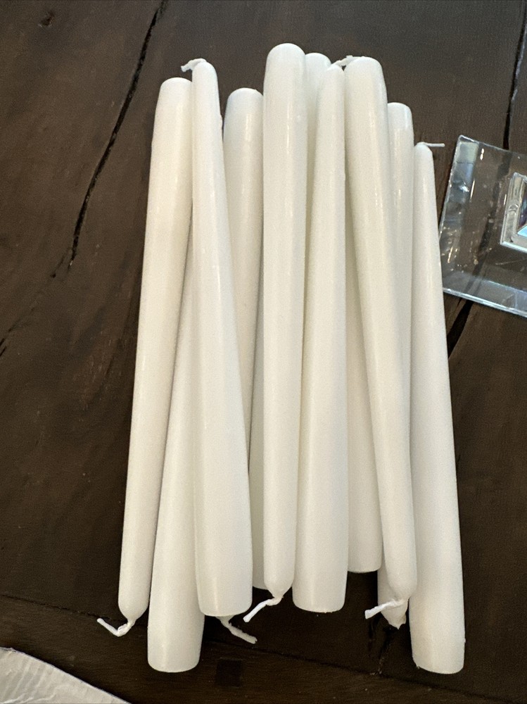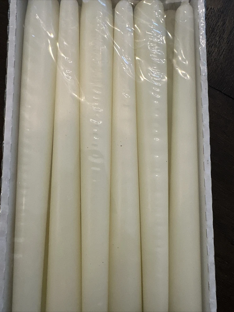 1. Beautiful ivory/white tall tapers. They are just what I wanted for my crystal candlesticks. They came quickly and were carefully wrapped and packaged to make sure they arrived safely. Thank you for your care in shipping!