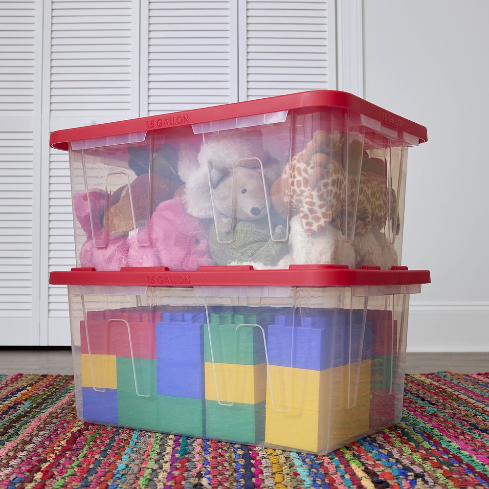 $ 28.6827 Gallon Clear Plastic Storage Bin, Red Lid, Storage for all ages