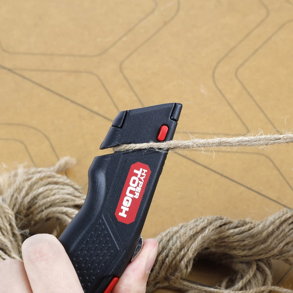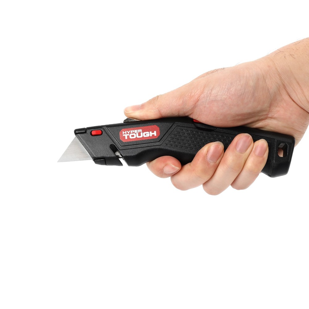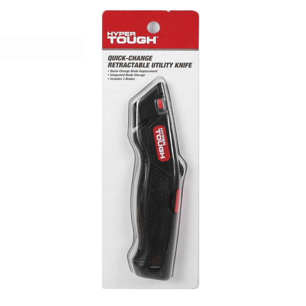 The Hyper Tough Quick-Change Retractable Utility Knife comes ready to use right out of the box with one blade inside the blade body and two blades inside the storage compartment. This utility knife features a quick-change mechanism that allows you to replace old blades with the push of a button. Built-in wire cutters allow for quick cutting without exposing the blades. The blade holder has built-in blade storage compartments that can accommodate three blades, ensuring that you always have spare blades ready. The Hyper Tough Quick-Change Retractable Utility Knife is the perfect all-purpose cutting tool. The blade body is made of lightweight aluminum. Manufacturer: Hangzhou Star Industrial Co., Ltd. Ultra-tough Quick-Change Retractable Utility Knife Quick blade change, no tool required Integrated blade storage handle, can store 3 blades Compatible with standard-sized utility blades Integrated wire cutters, can be used even when the blade is retracted The utility knife body is made of lightweight aluminum Includes 3 utility blades Manufacturer: Hangzhou Star Industrial Co., Ltd.
