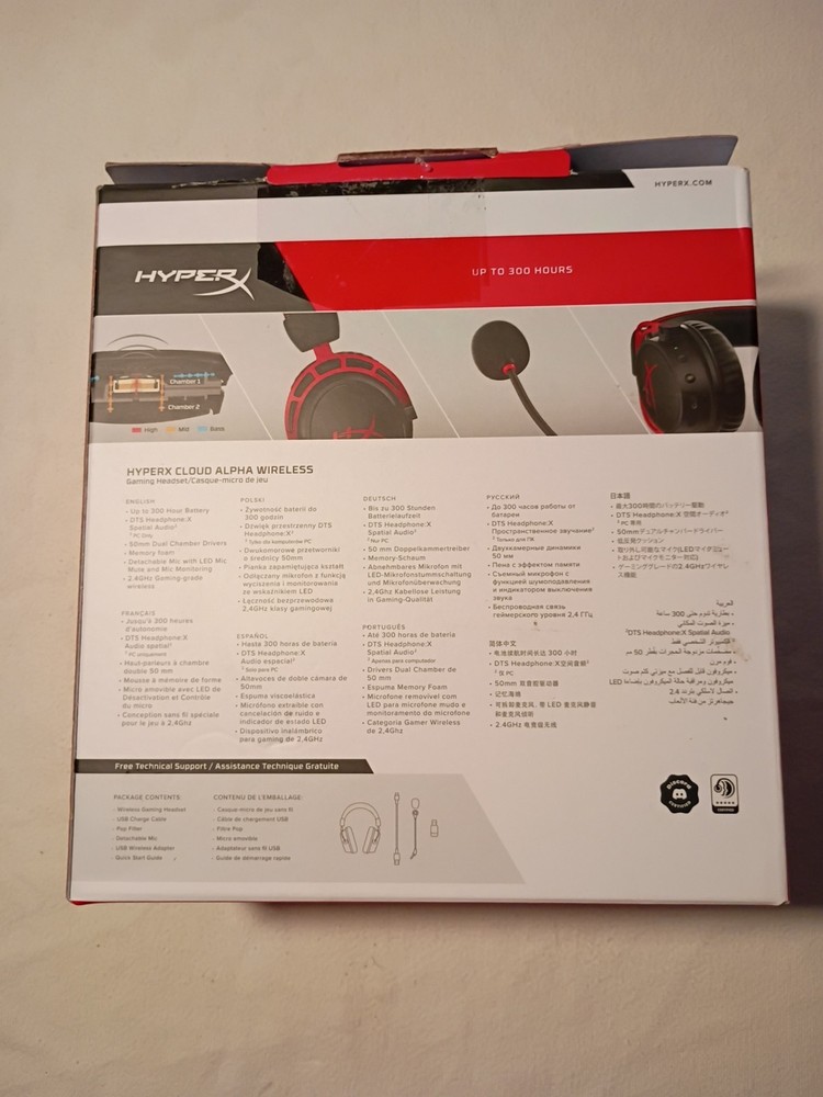 The left eat phone is damaged. What you see in the pictures is exactly what you will receive. The HyperX Cloud Alpha Wireless DTS Headphone in black is a high-quality gaming headset with a sleek headband design and over-the-ear earcups. With Bluetooth wireless technology, gamers can enjoy freedom of movement while playing. This model also includes a boom microphone for clear communication during gaming sessions. The headset comes with a manufacturer warranty of 2 years, making it a reliable and durable choice for gamers looking for a top-notch audio experience.