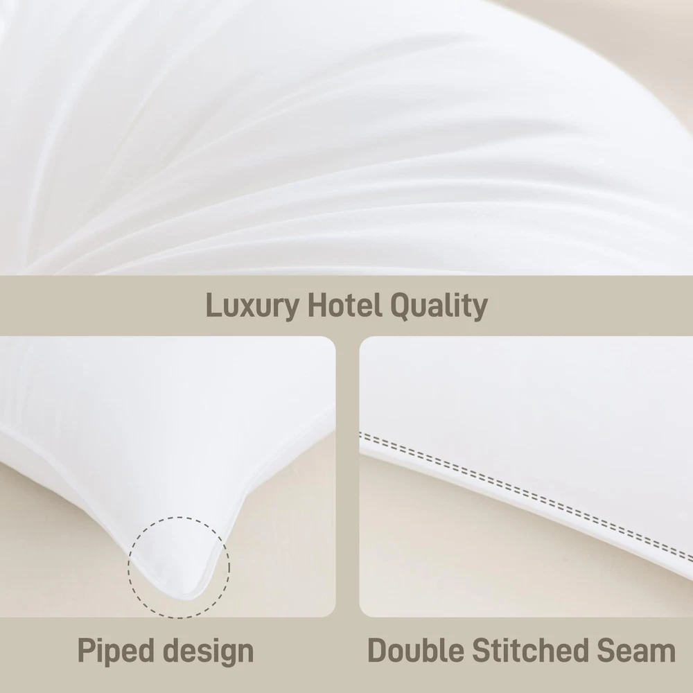 bed side back sleeper queen hotel quality soft size down alternative hypoallergenic sleeping best sleep pillow queen size for adults bed side stomach sleepers sleeping stomach sleeping luxury comfortable 【Premium Down Alternative for a soft and Sustainable Sleep】Filled with premium down alternative (polyester) material, this pillow provides a soft, airy feel akin to real down, offering you a luxurious, hotel-quality sleep experience. Its sustainable design ensures you enjoy both comfort and environmental responsibility, night after night. 【Soft, Breathable Bamboo Viscose Pillow Shell】 The pillow shell is made with high-quality bamboo viscose fabric. It provides a silky smooth feel that enhances breathability and helps regulate temperature, ensuring you stay refreshed all night. 【Oeko-Tex Certified for Quality and Safety Sleep】 This pillow is Oeko-Tex certified, meeting strict safety and quality standards. With this certification, providing peace of mind and a healthier sleep experience. 【Easy Care】 This pillow is designed for effortless maintenance, featuring machine washable capabilities that make cleaning a breeze. Even after prolonged use, it retains its soft texture and luxurious quality, giving you a lasting, comfortable sleep experience. 【High-Quality After-Sales Service for Your Peace of Mind】We are committed to providing exceptional after-sales service to ensure your satisfaction. If you have any questions or concerns, our customer service team is available to assist you and will provide a satisfactory resolution within 24 hours.