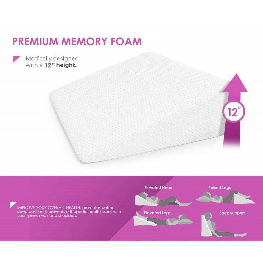 Adjustable Memory Foam Wedge Pillow with Washable Zip-Off Cover for Comfort and Support