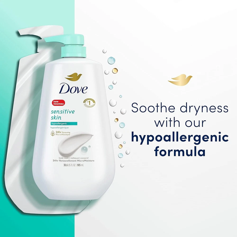 Hypoallergenic Moisturizing Body Wash for Sensitive Skin with Pump - 3 Pack