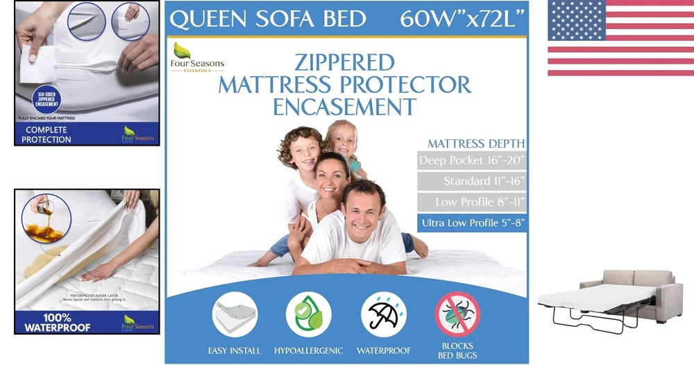 Hypoallergenic Sleeper Sofa Mattress Encasement - Premium White Cover 60"Wx72"L ‹ › ‹ › ‹ › ‹ › ‹ › ‹ › ‹ › ‹ › ‹ › Hypoallergenic Sleeper Sofa Mattress Encasement Dimensions: 60"W x 72"L Features: Six Sided Zippered Encasement: Completely encases your mattress on all sides, featuring a Velcro zipper seal that ensures a secure closure. Waterproof Protection: Crafted with a 100% waterproof polyurethane inner lining to block all liquids and moisture from seeping in. Allergen Relief: Hypoallergenic construction deters dust, pet hair, and other allergens, ensuring a healthier sleep environment. Easy Installation: Full zipper design for easy placement; simply slide your mattress into the sealed end and zip around for a perfect fit. Soft & Noiseless: Made of stretchable, breathable fabric to guarantee a soft feel without any crinkles under your sheets. Benefits: Complete security against wear and damage from pets, kids, or accidents. Maintain a dry and clean sleeping surface, prolonging the life of your mattress. Crisp and fresh sleeping experience with a hypoallergenic barrier. Effortless care with machine washable fabric for lasting cleanliness. Why Choose Our Hypoallergenic Mattress Encasement? Your sleep sanctuary deserves the very best! Protect your investment with our premium Hypoallergenic Sleeper Sofa Mattress Encasement. With advanced features that include a waterproof inner layer and a comprehensive allergen guard, you can finally enjoy restful nights free from worries about spills or allergy irritants. Breathe easy and sleep soundly knowing your mattress is enveloped in optimal protection. Order your encasement today and experience the difference in your sleep quality! Shipping Free & Fast Shipping - We offer free shipping to most of the USA with a normal delivery time of 3-7 days. However, due to the current situation, additional delivery time (up to 3 weeks) may be required for some items. Alternative Carriers - We may use alternative carriers (e.g. USPS, FedEx, UPS, etc.) to ensure your package arrives safely and on time. Due to the use of multiple carriers, we are unable to provide a tracking number automatically. Handling Time - Orders are processed and shipped within 1-2 business days of receiving cleared payment. Shipping Restrictions - Shipping to Alaska, Hawaii, Puerto Rico, Guam, and other US territories may incur shipping charges or delivery restrictions. Please contact us before ordering, or your order can be refunded/cancelled. State Restrictions - There may be restrictions based on your state of purchase. For example, certain items may not be shipped to California due to state regulations. Contact for Tracking Updates - If you require tracking updates or have any concerns about the delivery of your order, please feel free to contact us, and we will be happy to assist you. Return 30-Day Hassle-Free Returns - We want you to be completely satisfied with your purchase. If you are not, you can return the item within 30 days of receiving it for a full refund or exchange. Easy Return Process - To start a return, simply contact us and we will provide you with a prepaid return shipping label and detailed instructions. Restocking Fee - There are no restocking fees for returns. However, the buyer is responsible for return shipping costs if the return is not due to a seller's error. Refund Processing Time - Refunds will be processed within 5 business days of receiving the returned item in its original condition. Payment We accept all major credit cards, PayPal, and Apple Pay for your convenience. Your payment information is secure and encrypted to ensure a safe and seamless transaction. Please complete your payment within 3 days of purchase to avoid any delays in shipping. Feedback Your feedback is extremely important to us. We strive to provide the best products and customer service possible. If you are satisfied with your purchase, please take a moment to leave us a positive review. If you have any concerns or issues with your order, please contact us before leaving negative feedback. We are committed to resolving any problems and ensuring your satisfaction. Contact Us If you have any questions or concerns, please feel free to reach out to our customer support team. You can contact us through the eBay messaging system. We are available Monday to Friday, 9:00 am to 5:00 pm EST, and we will do our best to respond to your inquiry within 24 hours. Buy it now and enjoy a pleasant shopping experience! UPC: Not Set Item Length: Queen Mattress Protector Item Width: Queen Mattress Protector Unit Quantity: 2 Material: Polyester,Polyurethane Features: Hypoallergenic,Waterproof,Fully Encased,Noiseless,Breathable Care Instructions: Machine Wash Character: Not Set Theme: Not Set Department: Kids Room: Bedroom Labels & Certifications: Not Set Brand: Unbranded Size: Queen Type: Mattress Protector Fill Material: None Color: White Pattern: Not Set MPN: Not Set Closure Type: Zip Insulation: Not Set Character Family: Not Set Country/Region of Manufacture: Not Set Style: Contemporary Shape: Rectangular Thread Count: 200 or Less GSM (Grams per Square Meter): None Model: Not Set Product Line: Not Set Unit Type: lb