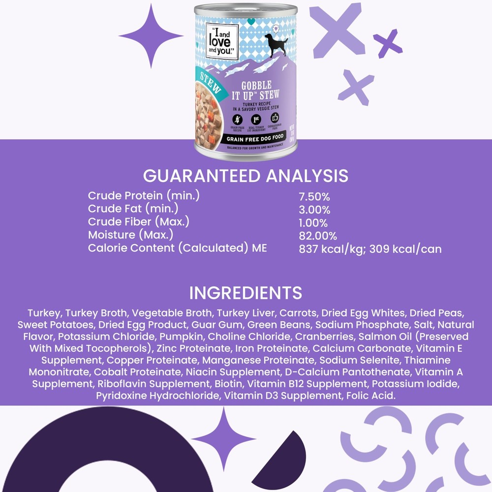 BUY WITH CONFIDENCE 100K+ Satisfied Buyers as your satisfaction is our top priority with easy returns, and dedicated support. FAST & RELIABLE SHIPPING All orders are processed quickly with reliable shipping partners. Most items ship within 24 hours. 20+ YEARS OF EXPERIENCE We pride ourselves on serving customers worldwide for over 20 years at lowest Possible Prices. I AND LOVE AND YOU Wet Dog Food - Gobble It Up Stew - Turkey Recipe, Grain Fr... Stew - A chunky and tender meal with rich gravy. Turkey is #1 Ingredient - Since the dawn of time, dogs have loved their protein—so that’s why this dish is packed with delicious, succulent chunks of the good stuff: farm-raised turkey. Hydration Boost - Your dog gets the benefit of an extra serving of moisture to ensure they’re getting enough H20 (without even knowing it!) every day. Grain-Free - Absolutely no corn, wheat, rice, soy, or oats in sight. We don’t pack your pet’s food with grains just to help us save a buck or two. Filler-Free - Unlike other brands, we don’t use ingredients like rice or corn to bulk out your pet’s food because we know there’s little nutritional value and it can contribute to obesity and lethargy. Allergy Safe pet food and treats Item Specifics Container Type: Can Age Range Description: Adult Item Package Quantity: 1 Brand: I AND LOVE AND YOU Item Display Weight: 10.0 Item Form: Wet Size: 13 Ounce (Pack Of 12) Part Number: F01040 Style: 13 Oz, 12 Count Animal Food Diet Type: Veterinary Diet Model Number: Gobble It Up Stew Animal Food Nutrient Content Claim: High Protein About Us Payment Shipping Returns Welcome to Bixlife ! We are committed to providing high-quality products at competitive prices with exceptional customer service. Our mission is to make your shopping experience smooth, reliable, and worry-free. Every item we offer is carefully selected and shipped with care. Shop with confidence knowing your satisfaction is our top priority. Shop Smart. Shop Secure. Shop Bixlife! We only accept eBay Managed Payments . This allows you to securely pay with your preferred method, including major credit and debit cards, PayPal, Apple Pay, and Google Pay (where available). Payment is required at checkout to ensure fast and smooth order processing. Domestic Shipping Only We ship exclusively within the United States . No International Shipping We do not ship outside the USA at this time. Orders are processed and shipped promptly after payment is received. Tracking information will be provided once your order has been dispatched. We offer a 30-day return policy from the date of delivery. Items must be returned in their original condition and packaging . Buyers Remorse Returns : A 15% restocking fee will be applied. Return shipping costs are the responsibility of the buyer unless the item is defective or not as described. Refunds will be issued back to your original payment method once the return is processed. We hope you will love your purchase, however if you need to return it, we have a 60 day return policy. We hope you will love your purchase, however if you need to return it, we have a 60 day return policy. We hope you will love your purchase, however if you need to return it, we have a 60 day return policy. We hope you will love your purchase, however if you need to return it, we have a 60 day return policy. Other Deals ACANA Wholesome Grains Dry Dog Food Puppy Sea Farm Recipe 22.5lb Bag $102.56 JustFoodForDogs Frozen Fresh Dog Food, Complete Meal or Topper, Fish Sweet P... $103.91 JustFoodForDogs DIY Nutrient Blend for Homemade Dog Food, Beef Russet Potato... $35.89 ORIJEN Grain Free High Protein Dry Dog Food Senior Recipe 23.5lb Bag $141.28 ACANA Butcher’s Favorites Grain-Free Dry Dog Food Farm-Raised Beef Liver Rec... $43.04 Weruva Classic Dog Food, Variety Pack, Barons Batch, Wet Dog Food, 5.5oz Cans... $92.07 Add suggested items to your listings - Check it out on 3Dsellers.com eBay listing template by 3D sellers.com - Try for Free!