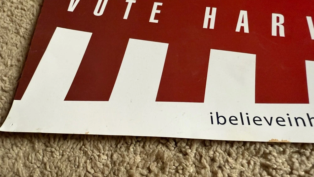 This is one of the rare, original signs from The Dark Knight viral marketing campaign! I participated in it from beginning all the way to the end! This is the last one I have! It does have a pin hole in each corner from being on a wall and a slight discoloration in one small spot (as pictured). Last chance to get a piece of Batman/Nolan/Movie/Marketing history!