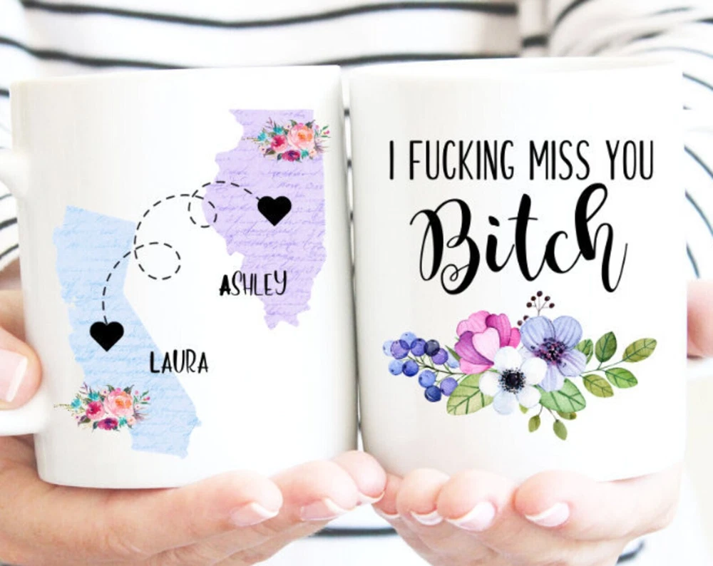 I F*cking Miss You Bitch Long Distance Friendship Mug Bff Gifts State To State Product Details.. This high quality 11oz. ceramic white mug has a premium hard coat that provides crisp and vibrant color reproduction sure to last for years. Perfect for all hot & cold beverages. The highest quality printing possible is used. It will never fade no matter how many times you wash it. Material: 100% Ceramic. Print both sides. Dishwasher and Microwave Safe. High Gloss + Premium White Finish. Printed in the U.S.A. Personalized & Custom. We support personalized and custom mug to add custom, when placing an order, you can add notes to the "order note" in shipping address section. Also you can contact us directly via message. Shipping Info. Ready to ship in 1 to 2 business days, All products are made-to-order and proudly printed in the United States. Shipped by USPS and DHL, You will receive your order in 5-7 days. Replace & Refund. All products are defective during shipping broken, chipped will be replaced free of charge. You are not satisfied with the product, we will refund 100% money to you. If any other issues arise, please do not hesitate to message, we would be more than happy to assist you.