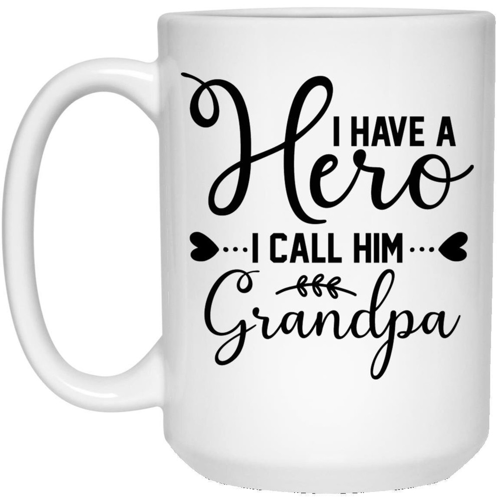 I Have A Hero I Call Him Grandpa Best Grandpa Gift Coffee Mug Grandpa Mug Funny Product Details.. This high quality 11oz. ceramic white mug has a premium hard coat that provides crisp and vibrant color reproduction sure to last for years. Perfect for all hot & cold beverages. The highest quality printing possible is used. It will never fade no matter how many times you wash it. Material: 100% Ceramic. Print both sides. Dishwasher and Microwave Safe. High Gloss + Premium White Finish. Printed in the U.S.A. Personalized & Custom. We support personalized and custom mug to add custom, when placing an order, you can add notes to the "order note" in shipping address section. Also you can contact us directly via message. Shipping Info. Ready to ship in 1 to 2 business days, All products are made-to-order and proudly printed in the United States. Shipped by USPS and DHL, You will receive your order in 5-7 days. Replace & Refund. All products are defective during shipping broken, chipped will be replaced free of charge. You are not satisfied with the product, we will refund 100% money to you. If any other issues arise, please do not hesitate to message, we would be more than happy to assist you.