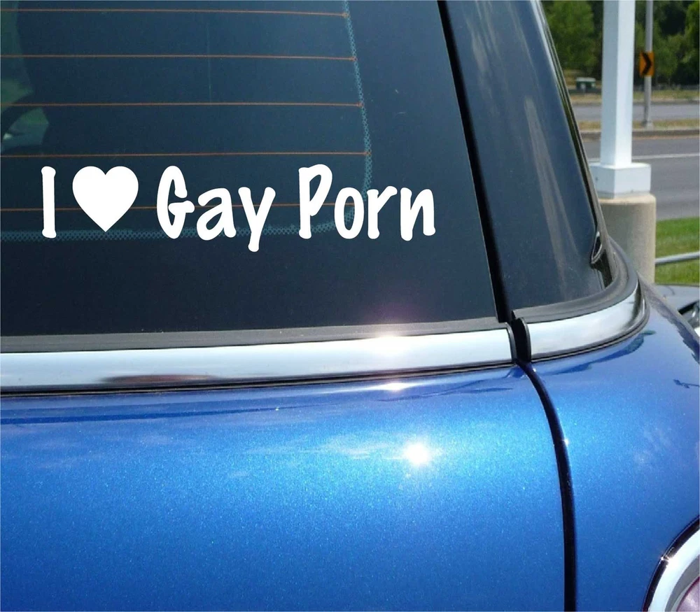 I LOVE HEART GAY PORN PRANK JOKE FUNNY DECAL STICKER ART CAR WALL