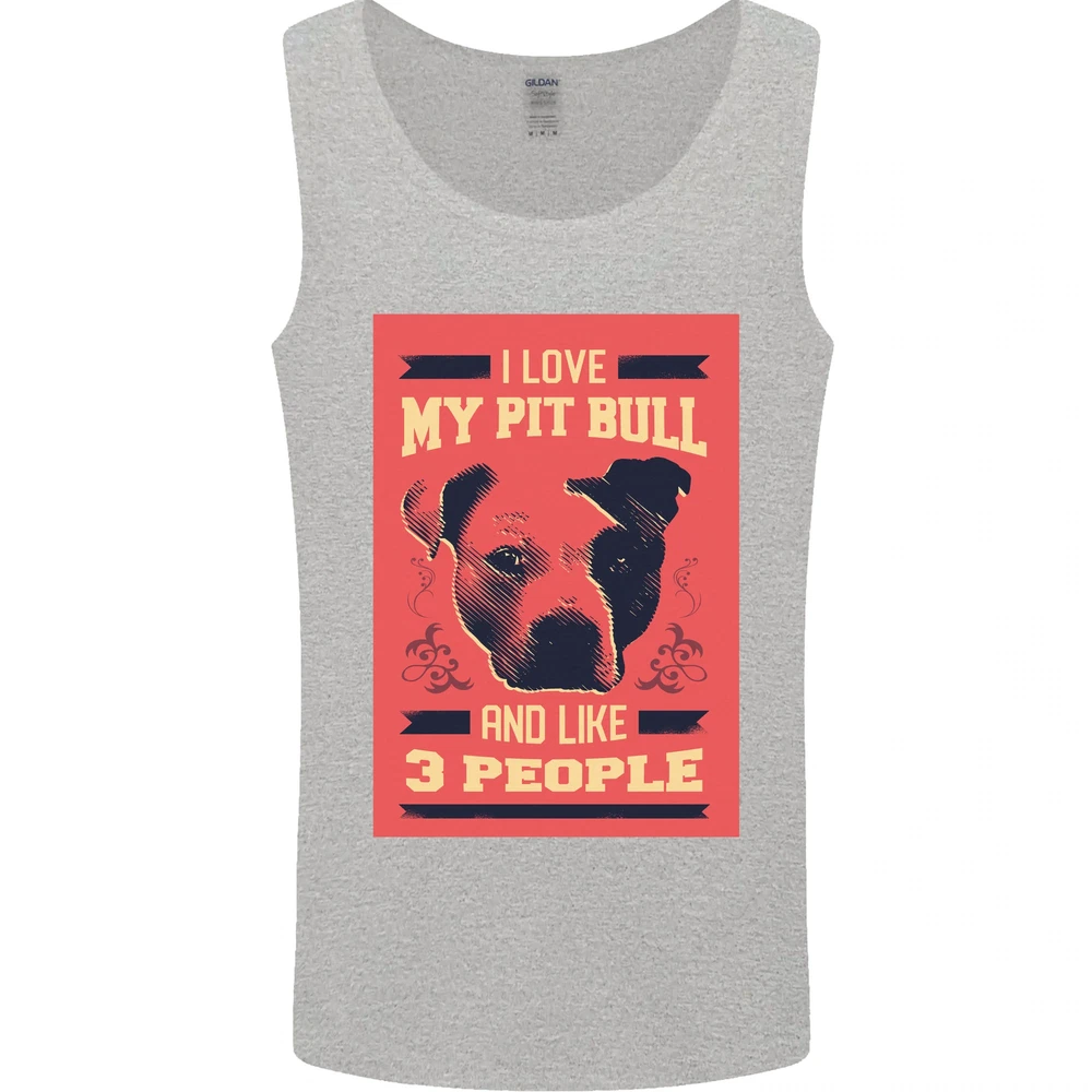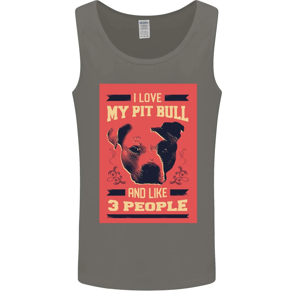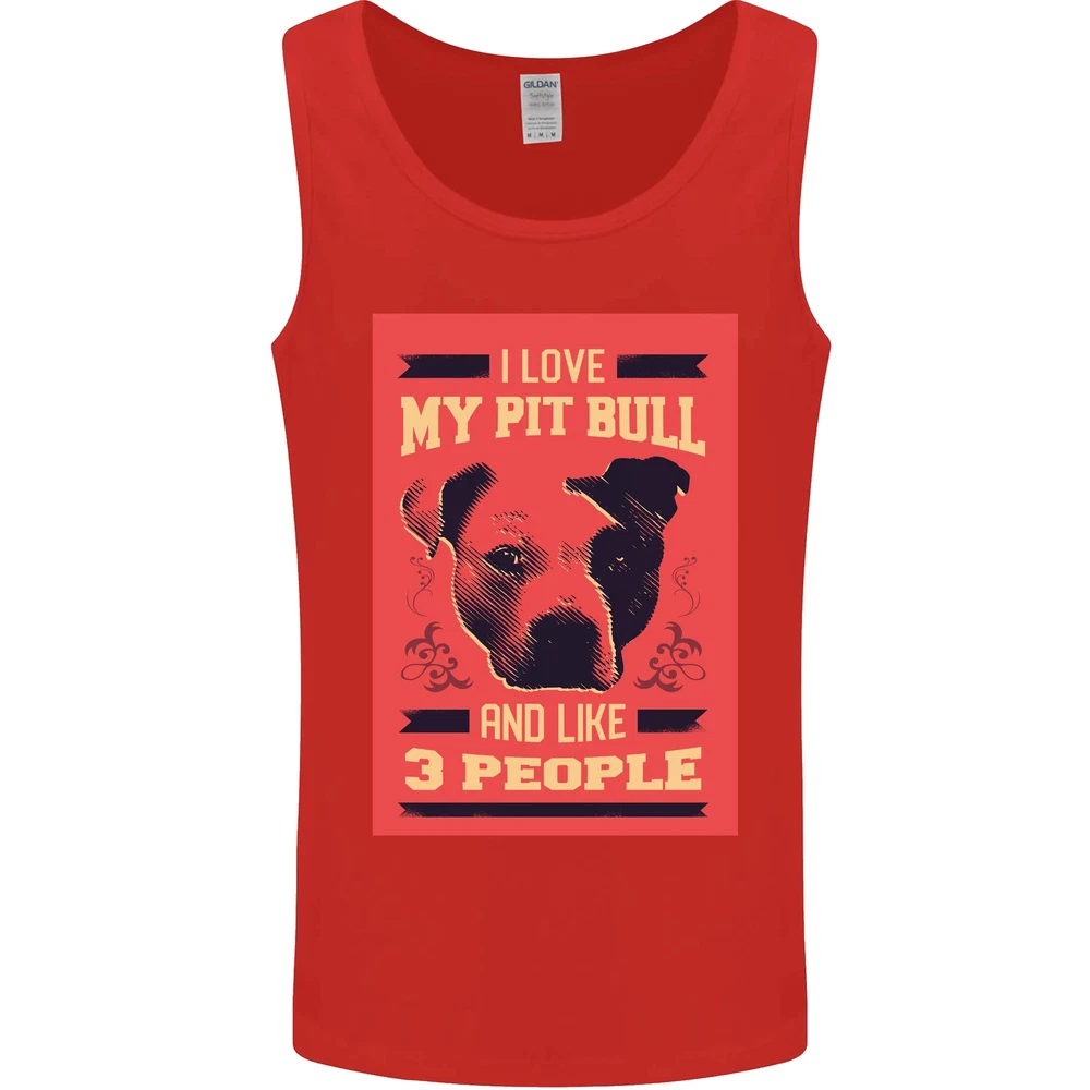 I Love My Pitbull & 3 People Funny Mens Vest Tank Top
