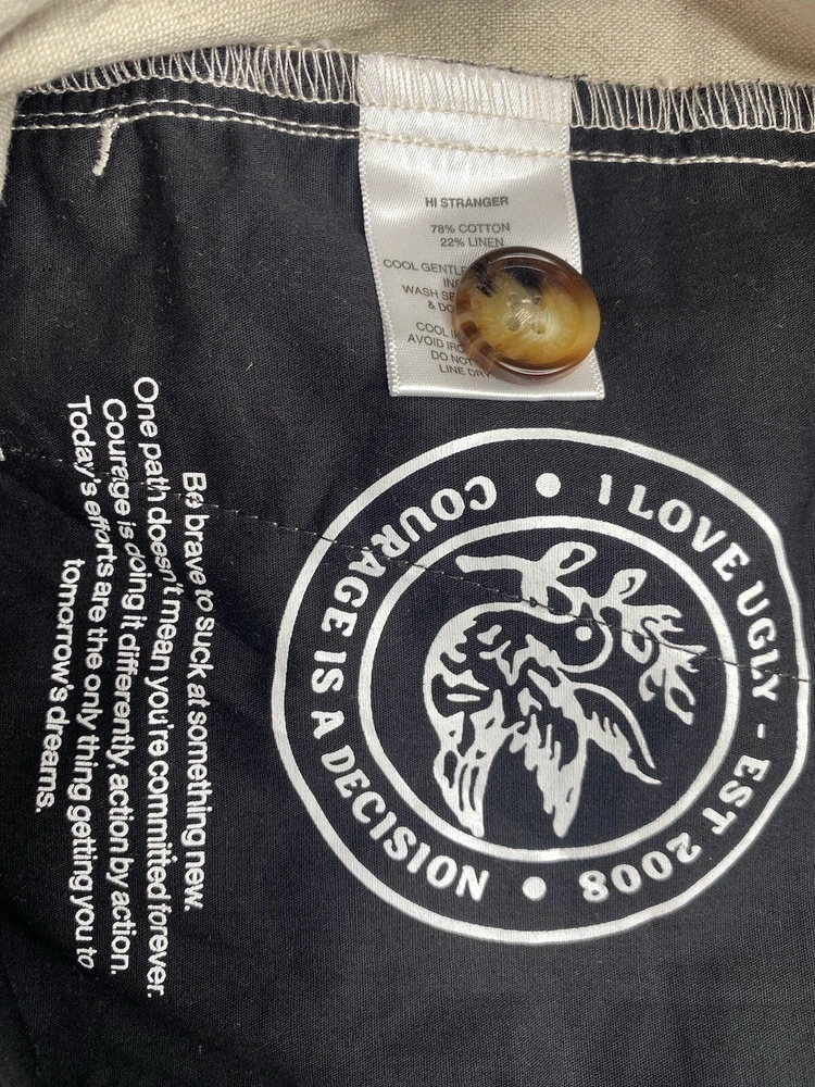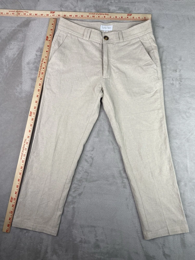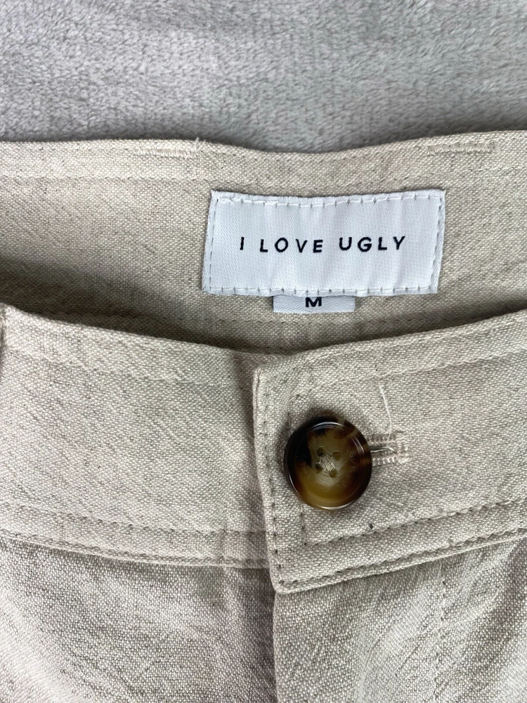 I Love Ugly ILU Ankle Pants Cotton/linen Blend Womens M Tan Color. Condition is Pre-owned. Shipped with USPS Ground Advantage.