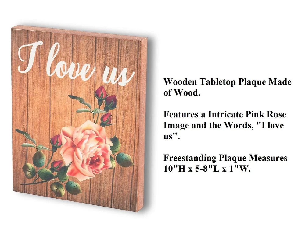 I Love Us Wooden Plaque w/ Rose Print Tabletop Decor Valentine's Gift 10"H #220 I Love Us Wooden Plaque w/ Rose Print Tabletop Decor Valentine's Gift 10"H #220 Click images to enlarge Description I Love Us Wooden Plaque w/ Rose Print Tabletop Decor Valentine's Gift 10"H. Put your love on display with this lovely tabletop sign. This simple message of "I Love Us" has a big impact. A lovely design of a large pink rose is painted onto this sign for a touch of Spring floral. Details: Measures 10"High x 8"Long x 1"Wide Made of Wood Free-Standing ~Buy more than one item at the same time from our eBay store and save in shipping costs!~ (If buying different items, just put them all in your cart before paying, to get the combined shipping discount!) Shipping We use UPS SurePost, UPS, USPS and FedEx SmartPost to deliver our products to your home, depending on which method is more efficient for your order. We use suppliers for some of our orders and our suppliers will choose the service that is used for these orders. PLEASE MAKE SURE YOUR ADDRESS CAN BE VERIFIED BY USPS. Please allow 7-10 days for the item to reach your home. We cannot be responsible for items shipped to incorrect or incomplete addresses, which may result in the cancellation of your order. YES, we do combine shipping! The highest shipping cost item ships at regular price, and each additional item ships at $2.00 more in additional shipping charges. If you are buying several different items from our store, put them all into your cart before paying to get the combined shipping discount. Terms of Sale Unless otherwise noted, we accept returns up to 30 Days after your purchase, through the eBay Returns System. Please use eBay to contact us if there is any problems or issues with your order. In some cases, we order the item purchased from one of our suppliers, and it is shipped directly from our supplier to the customer. There are times when an item unexpectedly becomes unavailable from our supplier. We do our best to check on all of the items availability several timea a day. If an item is unexpectedly unavailable, we will issue a refund immediately. Contact Us Please use the message center in eBay to contact us. We check our message box in eBay several times a day. If you have any questions or concerns with your order, please feel free to contact us. We care very much about our customers being 100% happy with their purchases. We would very much appreciate you letting us resolve any issues you may have with your order by contacting us first, before taking any other unnecessary actions. Pictures sell! Auctiva offers Free Image Hosting and Editing. 300+ Listing Templates! Auctiva gets you noticed! The complete eBay Selling Solution.