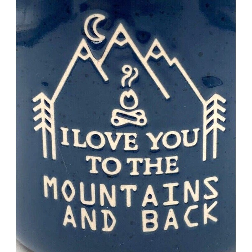 Members Mark I Love You To The Mountains and Back Camping Coffee Tea Mug Cup Wonderful camp style coffee mug or cup from Member's Mark, featuring a deep navy blue glossy body and a white stylized design that reads "I Love You to the Mountains and Back". PRODUCT INFORMATION: • Mug is marked on the underside with the Member's Mark logo, as well as information that the item is dishwasher safe and microwave safe. • Made in China CONDITION: Pre-Owned Excellent pre-owned condition, with no chips, cracks, damage, or breaks. Please see all photos for detailed views and best representation of condition. Feel free to contact us with any questions you might have before you buy/bid. MEASUREMENTS: Length 5.5 in / 14 cm Width 4.25 in / 11 cm Height 4.25 in / 11 cm SHIPPING and HANDLING Our handling time is THREE (3) BUSINESS DAYS, and we ship packages Monday - Friday (with the exception of holidays). Our shipping fees are calculated based on weight and dimensions. ITERUM EMPORIUM Thank you for shopping our emporium! We would love to serve you again, so save/favorite/like our store and visit us again to see new items, listed regularly.