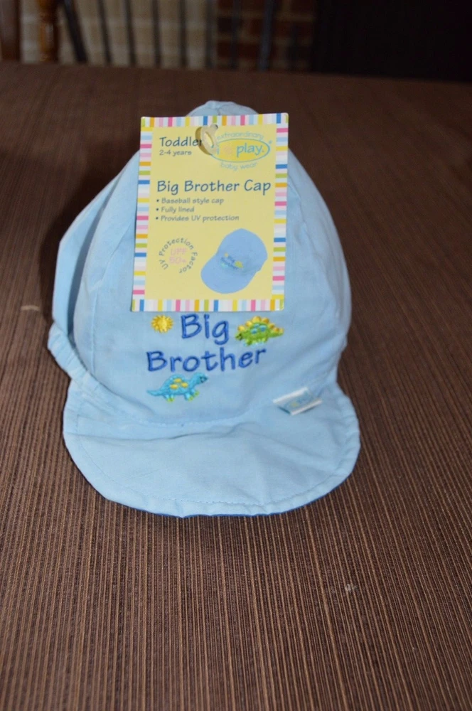 This item is a brand new still has original tags Extraordinary I Play Big Brother Baby war cap, size 2T-4T. perfect summer time hat. Baseball style Cap Fully Lined Provides UV Protection Please read our return policy: We appreciate your business and we will work with during your return process to make it as easy as we can for you to return your item. We will accept return and pay for the shipping back if the item doesn't match the description or it was broke when you received it but if you just change your mind or the item don't fit or not the size you can use or for any other reason you just don't want it any more you will be paying for the shipping back and will be refunded only the item cost without the original shipping cost even if the item was free shipping. Please contact us if you have any question about our return policy Thank you