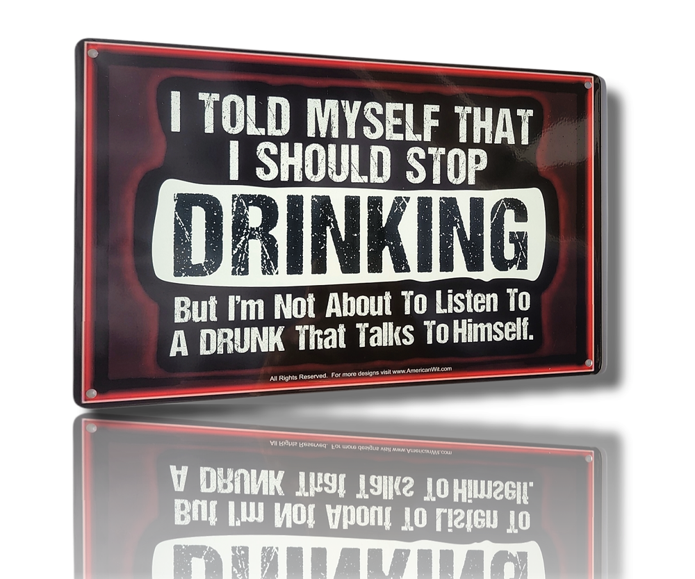 Freeboutiquetemplates.com American Wit 8" x 12" Metal Tin Funny Bar Sign Wall Decor Plaque Poster: " I Told Myself That I Should Stop Drinking, But I am Not About to Listen to a Drunk That Talks to Himself" Item Specifications: " I TOLD MYSELF THAT I SHOULD STOP DRINKING But I'm Not About To Listen To A Drunk That Talks To Himself" is the most accurate statement I ever made... but what do I know? This Funny Bar Sign comes in a Rustic Vintage look and will be a perfect addition to any bar! Perfect for a Bar Area or your Man Cave, but could be hanged in Living Room, Bedroom, Den, Dinning Room, Entertainment Room, Patio, Work Place Garage, Hallway, or anywhere else you like! EASY TO INSTALL: These decorative wall art pieces are incredibly easy to install! You can put these up in minutes using thumb pins, screws, wire or string, or strong adhesive strips! High Quality Thick .04mm Aluminum Sign. Size : 8"" x 12"" (20 cm x 30 cm). Fade-Resistant. Has folded edges for safety and stability. Comes in a Plastic Bag. Fast Free Shipping! .⭐⭐⭐⭐⭐ Always free Domestic Shipping!!! Welcome to our eBay store! We're a family-owned business dedicated to providing high-quality products and excellent customer service. We specialize in toys and novelty items, offering a wide range of options to suit your needs. Our inventory includes top brands and products that we personally select and test to ensure the best quality. Whether you're looking for ducks or tin signs, we've got you covered. Our team is always here to answer any questions you may have or provide assistance with any issues. We value our customers and strive to exceed your expectations, so please don't hesitate to reach out to us. Please write a Product Review when you have a chance. Your honest feedback is important to us and helps other shoppers make informed decisions. X410 On Feb 20, 2025 at 18:13:44 PST, seller added the following information: Get business information that counts! - Vendio Counters are active content free.