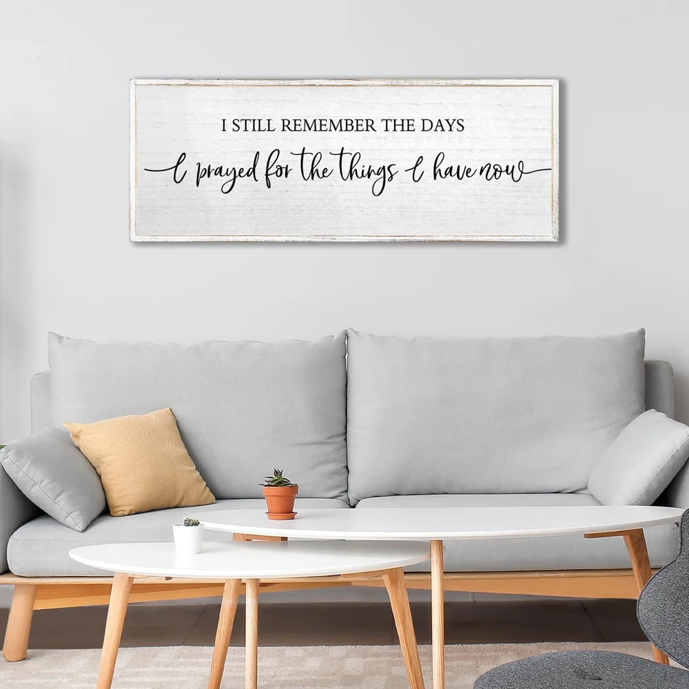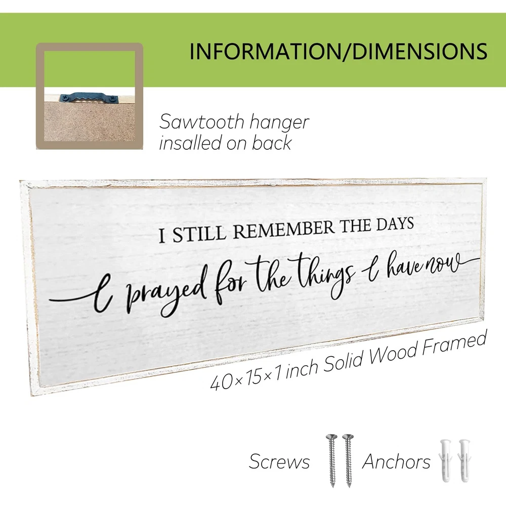Our framed wall decoration is a quality piece, made from selected high-quality wood, which is wear and tear resistant, lightweight yet in good shape, suitable for a variety of room layouts, adding a warm atmosphere to your home, And it is a great gift to give to lovers, family, father, mother, friends, colleagues, let your home be surrounded by love and affection. 【Preferred Material】: This wall decoration is made of high-quality wood, and the fonts are printed with UV ink, which will not fall off, crack, fade, and is safe to use. 【Easy to Use】: The wall sign 40"x15"x1" and has 2 pre-installed hooks on the back, so you can hang the wood sign on nails or hooks and instantly add beauty to a boring wall. 【Carefully Crafted】: Each piece of rustic wall art is unique, the overall frame is hand-dyed, the colors are bright and will not fade, and can be cleaned with a damp cloth without damaging the print. 【Multifunctional Decoration】: This decoration is designed to blend seamlessly into your home or office décor, it can be hung on the wall or placed on shelves and table tops, place it in the hallway, kitchen, bedroom, near the TV, for your Add warm tones to the house. 【Wonderful Gift】: Our wooden wall sign makes a great housewarming, anniversary, engagement and wedding gift, conveys a strong warm family atmosphere and can bring a romantic feel to your modern farmhouse and living room, making you Home is surrounded by love.