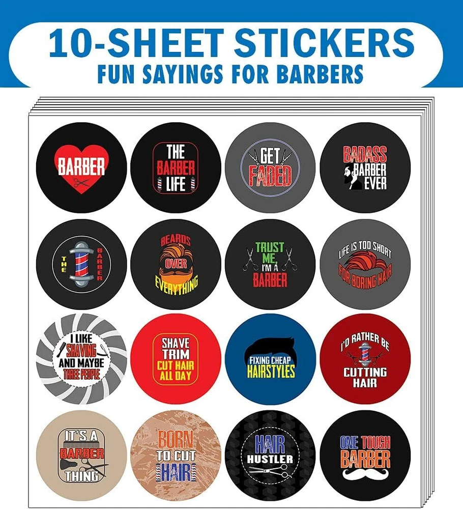 16 UNIQUE DESIGNS INSPIRING STICKERS FOR YOUR DIY PERSONALIZED DECORATIONS - I am a Barber Stickers (10-Sheets x 16 Designs). These colorful and uniquely inspiring round shaped stickers are the best tool for DIY decoration and personalization of your belongings. GREAT STOCKING STUFFERS, TEACHING SUPPLEMENTARY MATERIALS, AND GIVEAWAY - Great stocking stuffers gifts for Barbers, Hair Dressers, Adults Men & Women. A perfect design to give during guidance sessions, classroom activities, school giveaways, birthdays, anniversaries, family day, and any other special occasions. MADE WITH DURABLE AND WATERPROOF MATERIALS - There is a lamination or coating to make the stickers high water resistant, and WILL NOT fade from the water. The stickers can stick it anywhere you like, and it sticks there and lasts a long time. A COLORFUL AND DECOR STICKER DECAL - Each sheet with 16 individual round stickers. There are 10 Sheets, with a total of 160 pieces of stickers. STICKER SIZE: 1.5 INCHES IN DIAMETER I am a Barber Stickers (10 Sets X 16 Designs) COLORFUL AND COLLECTION OF TEXT STICKERS • Well designed. • Very encouraging. • Self-adhesive. I am a Barber Stickers (10 Sets X 16 Designs) are super fun to collect; you can't have just one! That's why you will find a selection of stickers right here. Each package comes with different stickers in a variety of designs. Stick them here, stick them there, stick them everywhere! Everyone will love these self-adhesive stickers. These colorful stickers are perfect for any adults and these come with very inspiring messages and bright pictures. A fun, inexpensive way to add a decorative, notes, and stationery. Delight yourself with uplifting messages designs that are very encouraging. I am a Barber Stickers (10 Sets X 16 Designs) perfect for giveaways, behavior incentives, prizes! These stickers are acid-free, nontoxic, and safe for use on photos. This product comes with a 60 days money back guarantee. You can return them to us for a full refund.