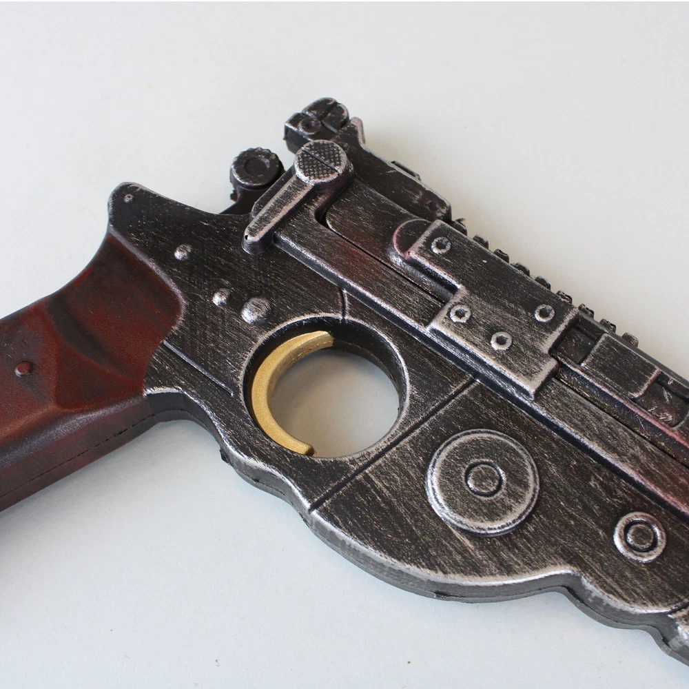 Get your own cosplay version of Mando's favorite blaster of choice with this foam prop replica of the IB-94 Blaster Pistol from Star Wars: The Mandalorian ! With a bright orange tip, this prop is convention safe* and light enough to hold for extended periods of time. More Details: Star Wars inspired foam prop replica Approximate length: 13 inches Material: foam Intended for ages 18 and over. Please note: this is a Display Only cosplay prop replica item. This replica is not intended for swinging, impact, or martial arts use. Check your local convention rules before bringing this prop This replica gun contains the colored markings required by law, including a permanently attached orange plug.