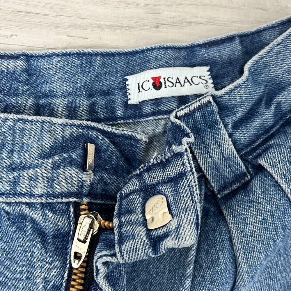 IC Isaacs Vintage High Rise Pleated Front 8" Blue Denim Shorts Size: No size tag please see measurements for fit Waist- 13" Rise- 14.5" Inseam- 8" No material tag Additional measurements available upon request All measurements are approximate All measurements are taken with item laying flat Double bust, waist, & hip for measurement all the way around Colors may differ based on others computer/phone/etc settings All pre owned items have been washed and steamed All pre owned items have been looked over for flaws and will be noted in listing